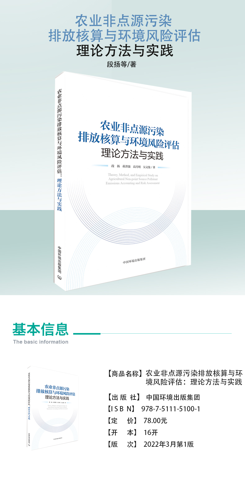 本书是作者近年来最新研究成果的总结,重点介绍了输出系数法以及二元结构模型法在非点源污染模拟核算中的应用。同时本书选取大清河流域、嫩江流域及长江经济带地区作为典型区域,运用相关方法对研究区非点源时空变化规律和污染风险进行模拟分析;重点介绍了中国种植业氮磷平衡研究以及中国种植业非点源负荷与污染风险评估的最新研究成果。本书适合于从事非点源污染研究、区域环境科学研究的专业科研人员以及相关管理部门进行阅读及参考。