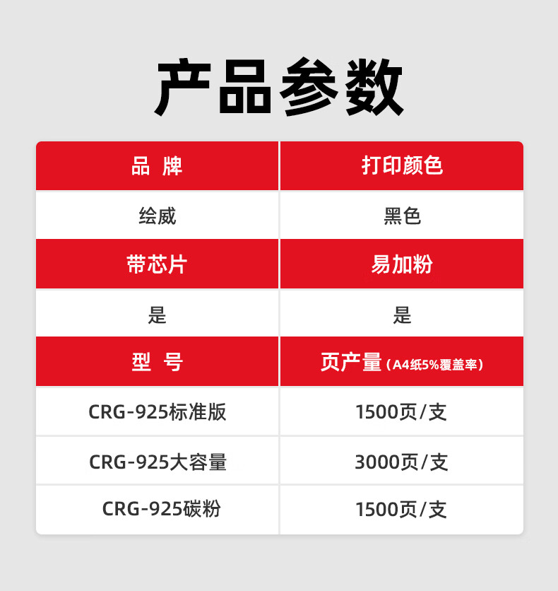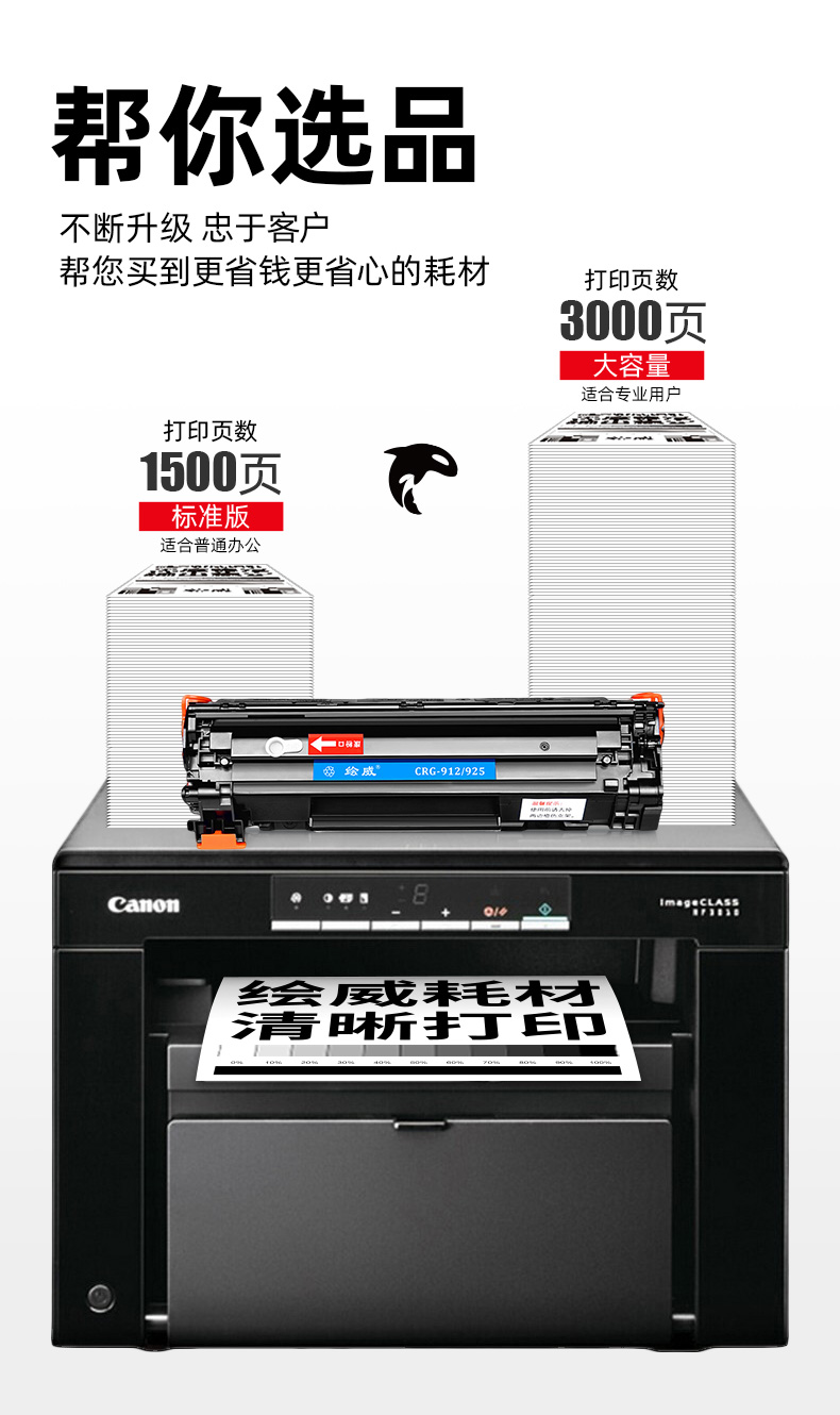 绘威臻享版 CRG-925硒鼓 黑色易加粉 适用佳能Canon LBP6018L LBP6018W MF3010 LBP3018 LBP3050 LBP3150