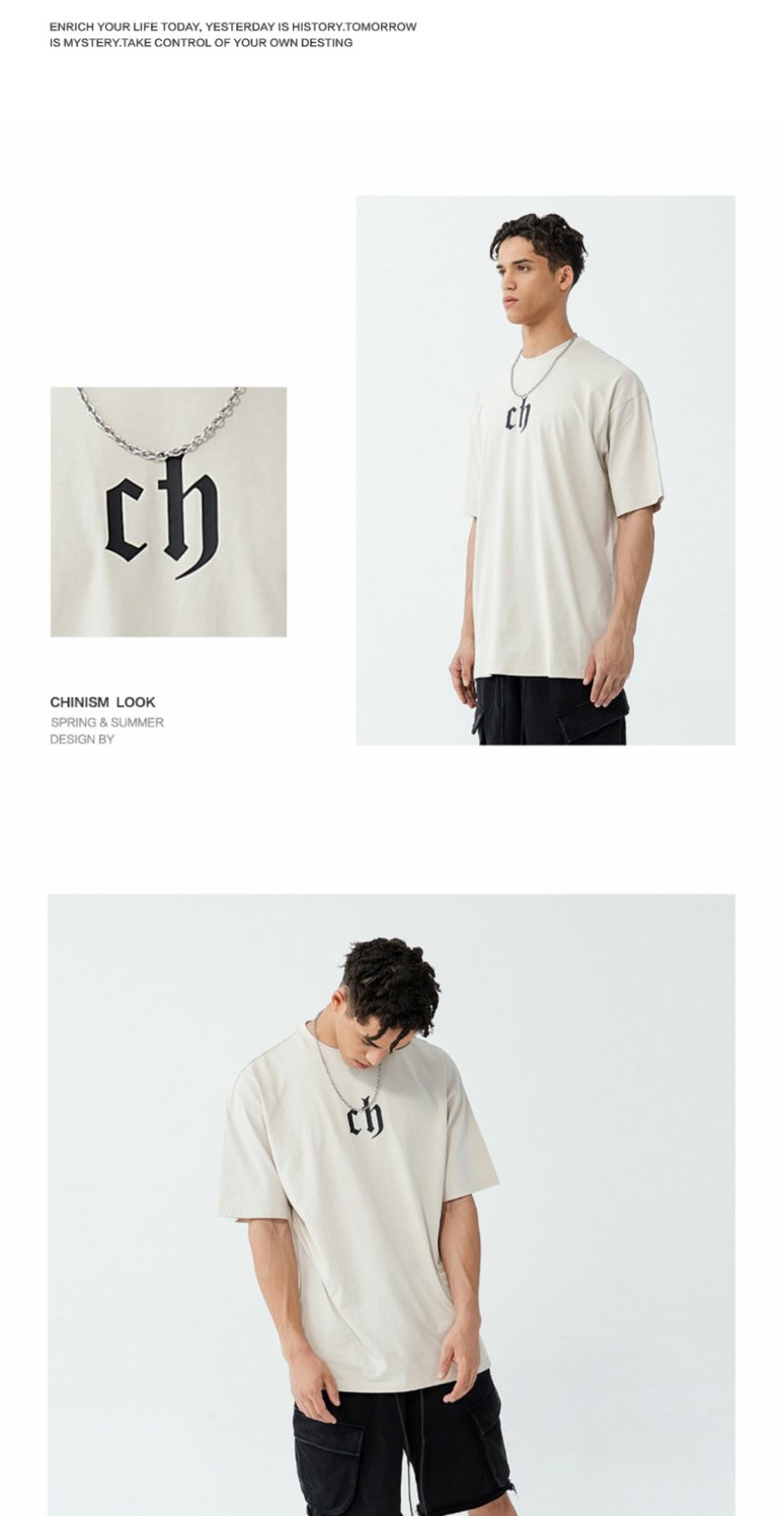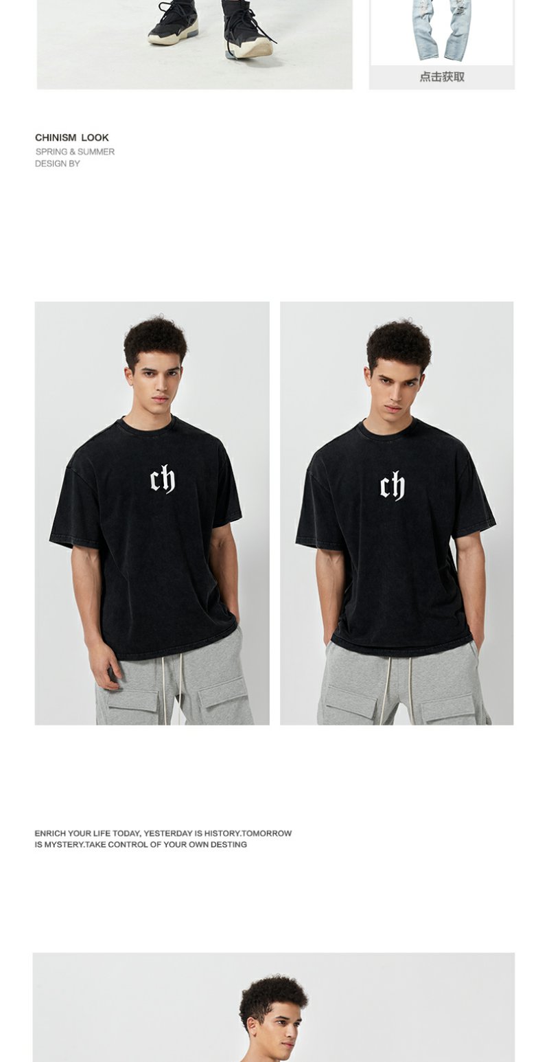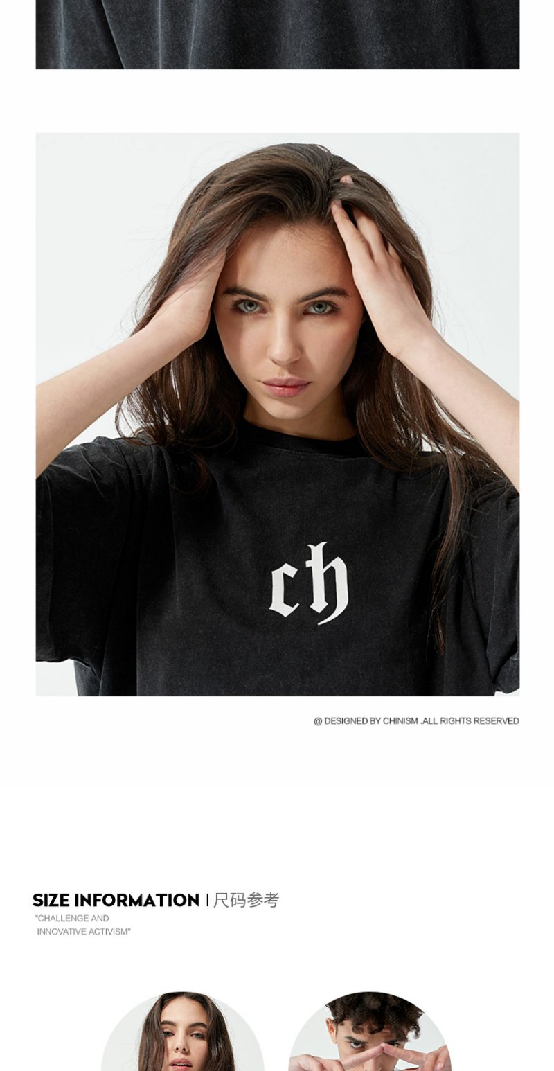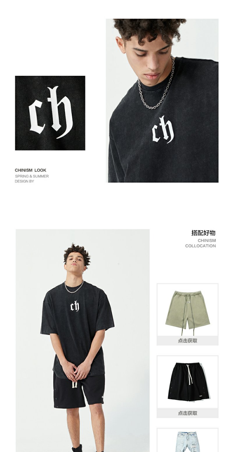CHINISM CH短袖t恤男水洗做旧美式高街潮牌宽松黑色夏季男生半袖