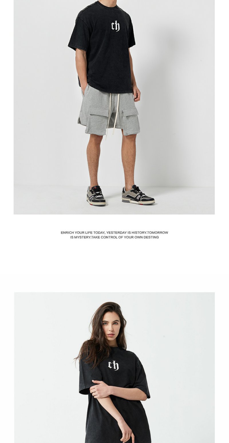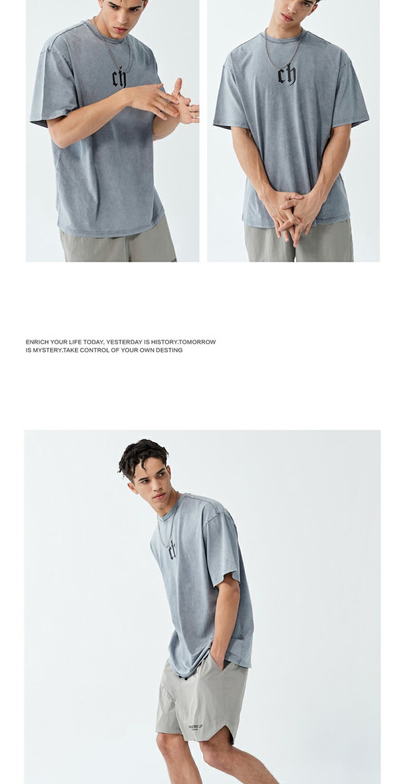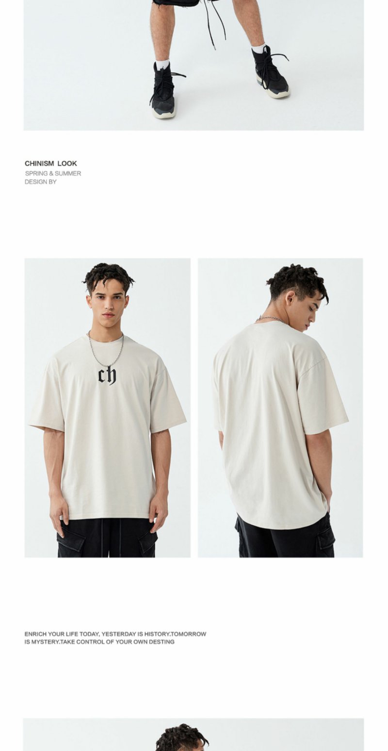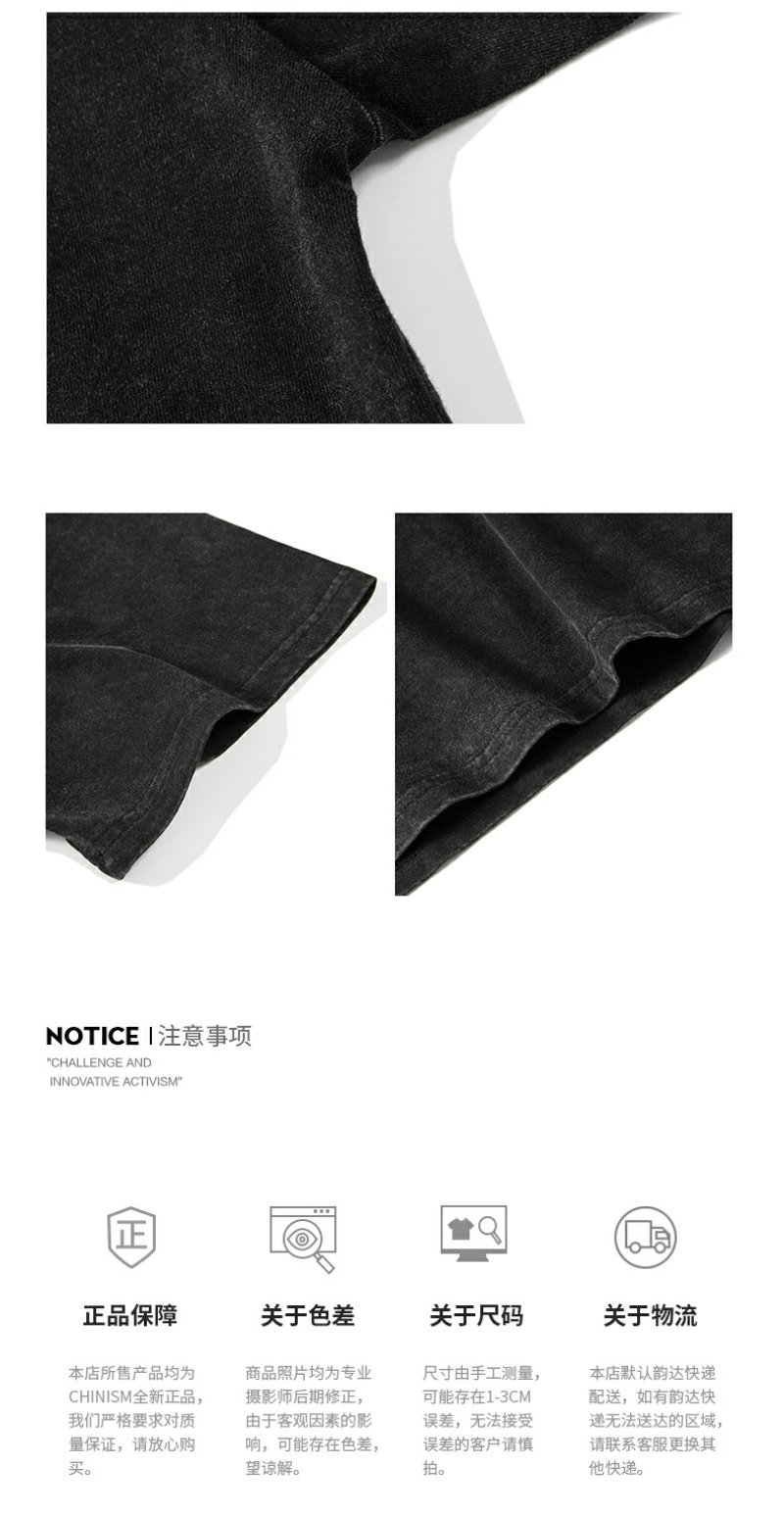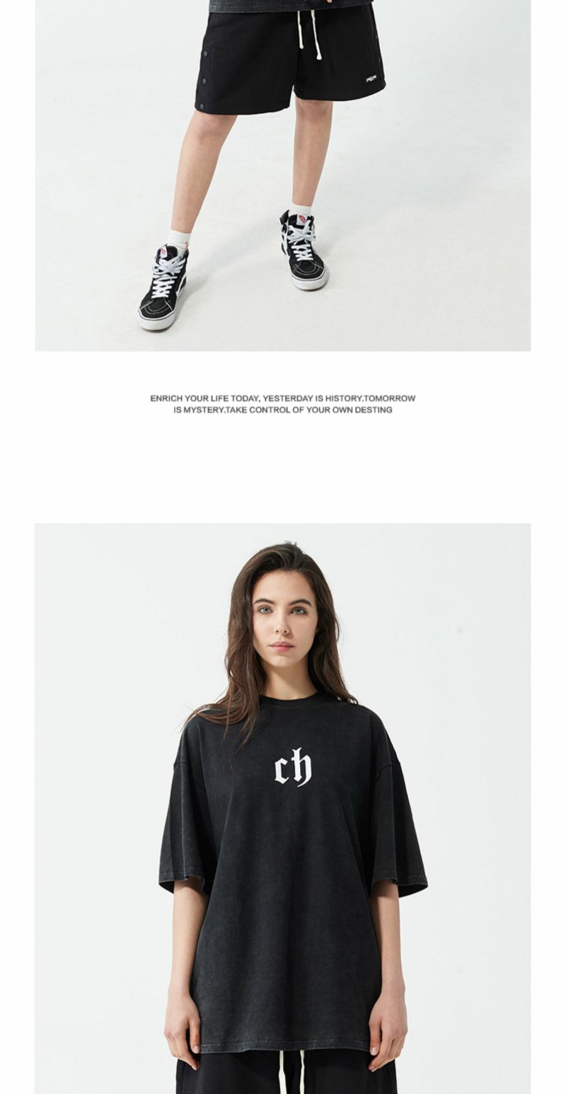 CHINISM CH短袖t恤男水洗做旧美式高街潮牌宽松黑色夏季男生半袖