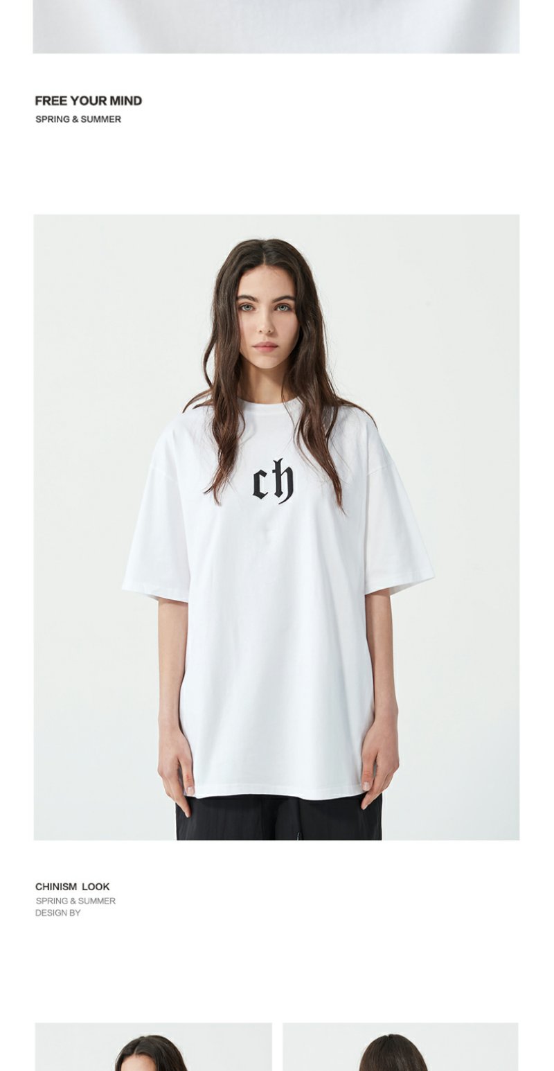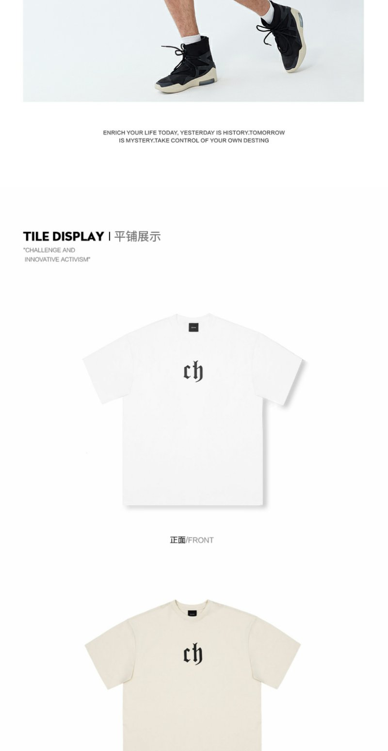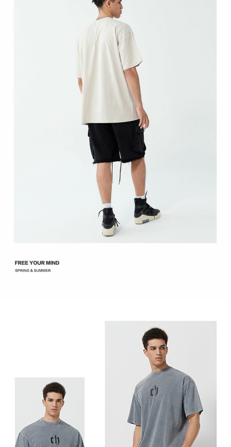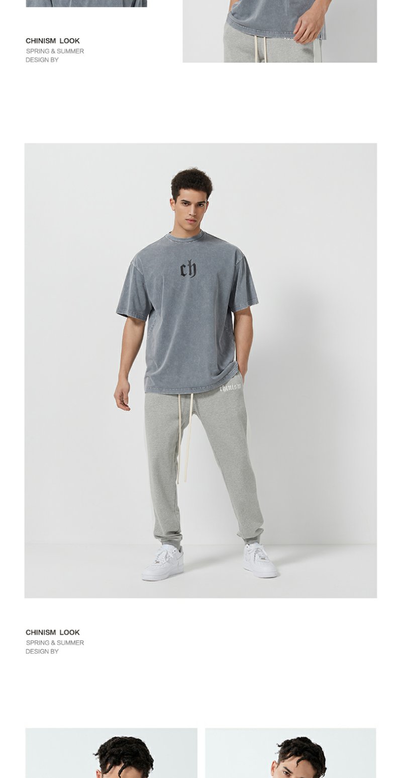 CHINISM CH短袖t恤男水洗做旧美式高街潮牌宽松黑色夏季男生半袖