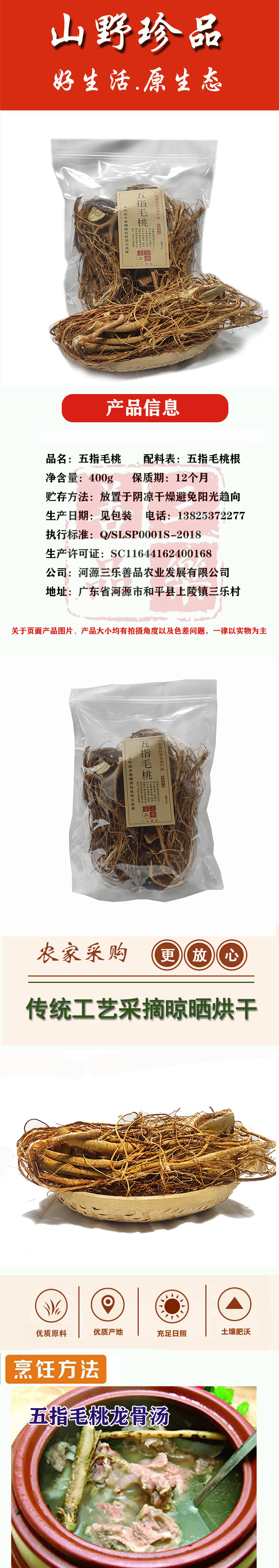 【三乐善品】五指毛桃根200g