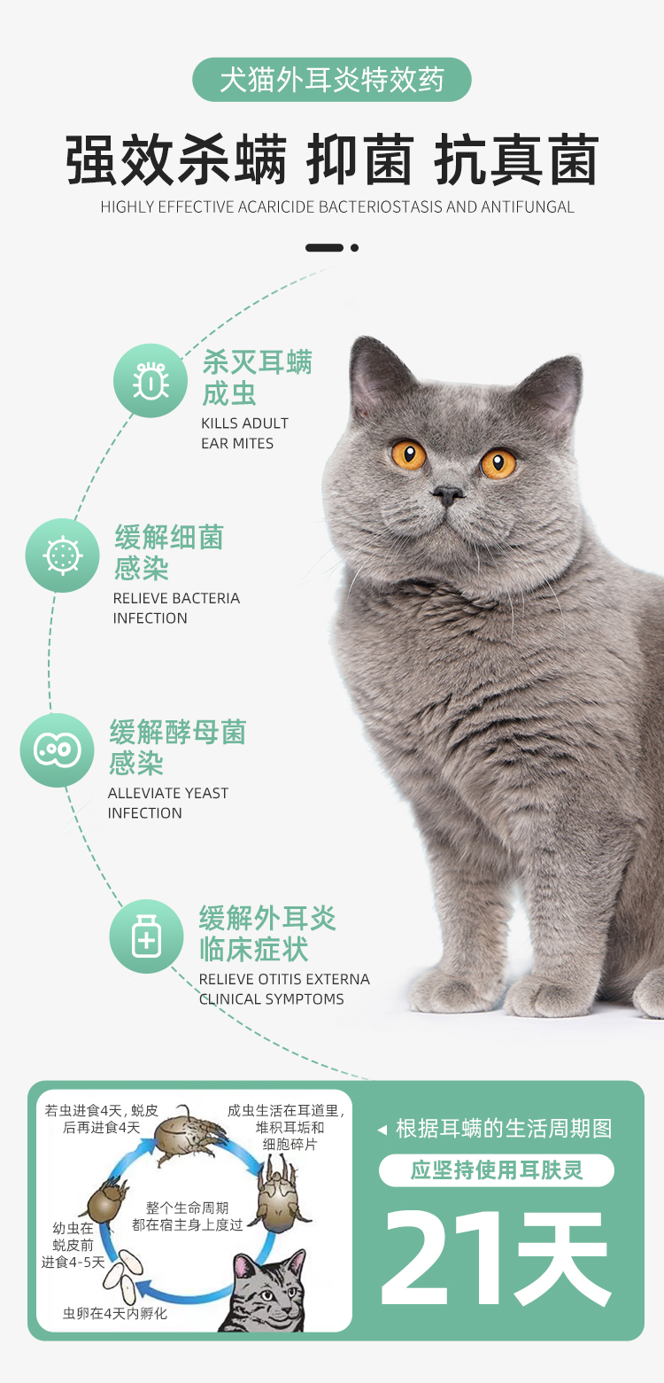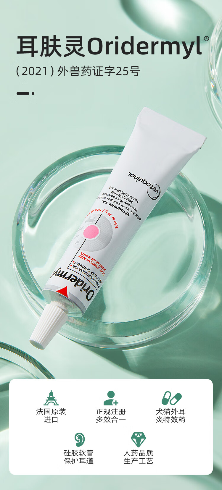 法国威隆耳肤灵软膏宠物耳螨药猫犬通用耳朵发炎滴耳液10g/支