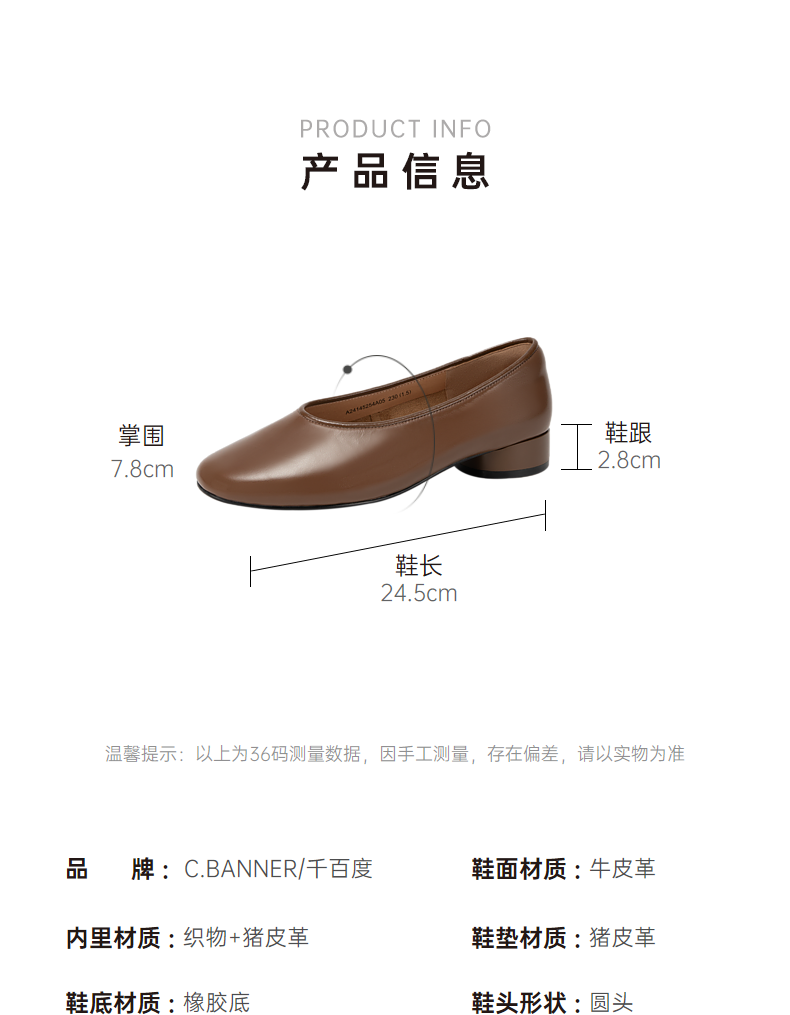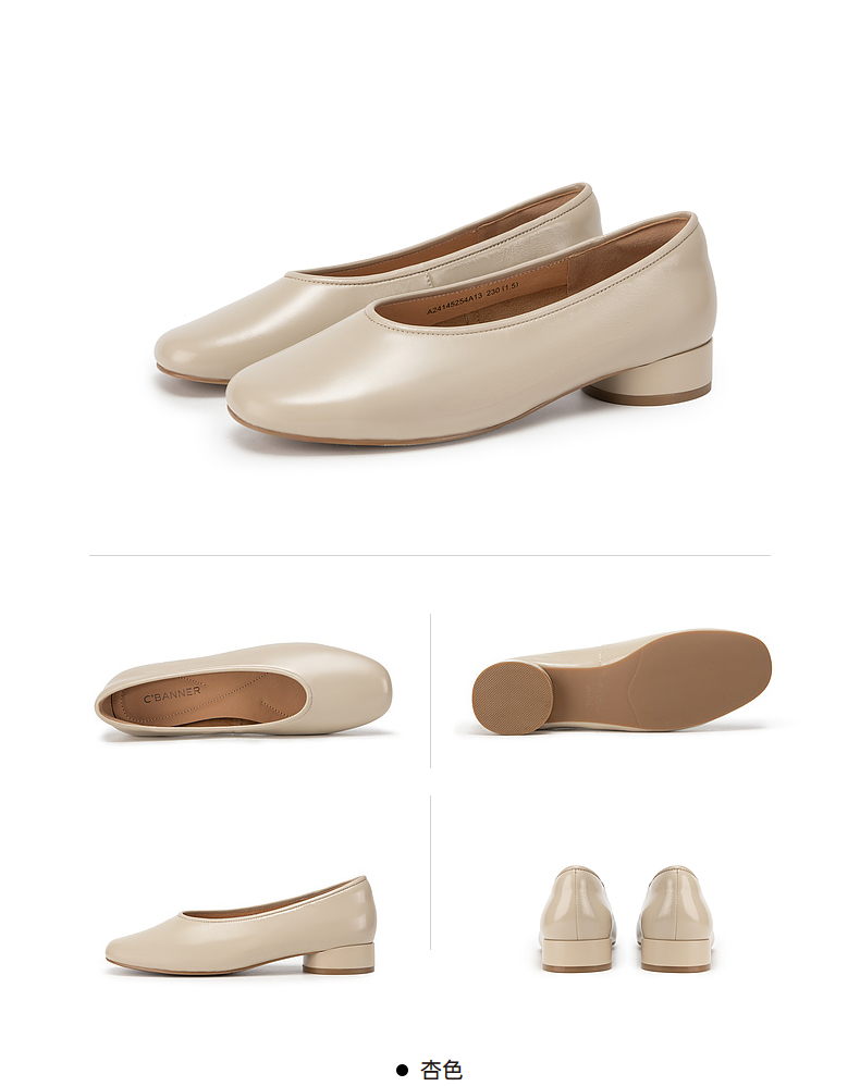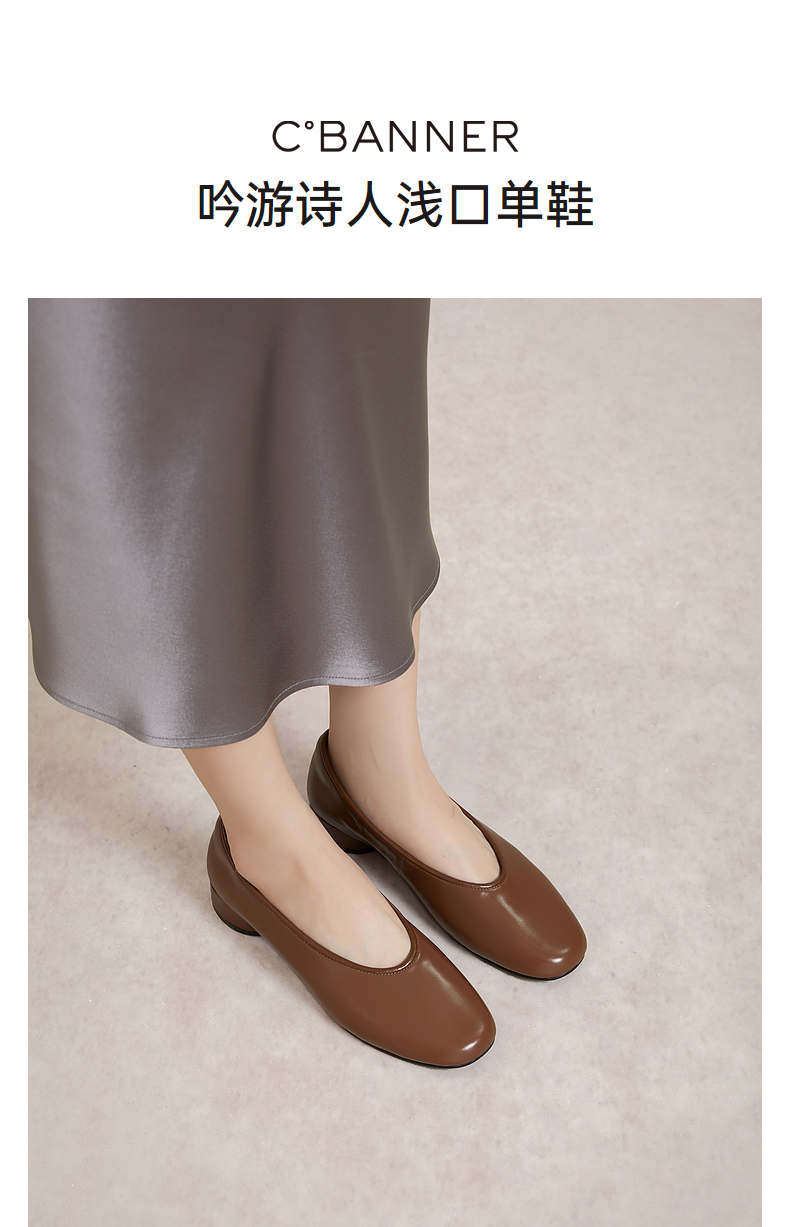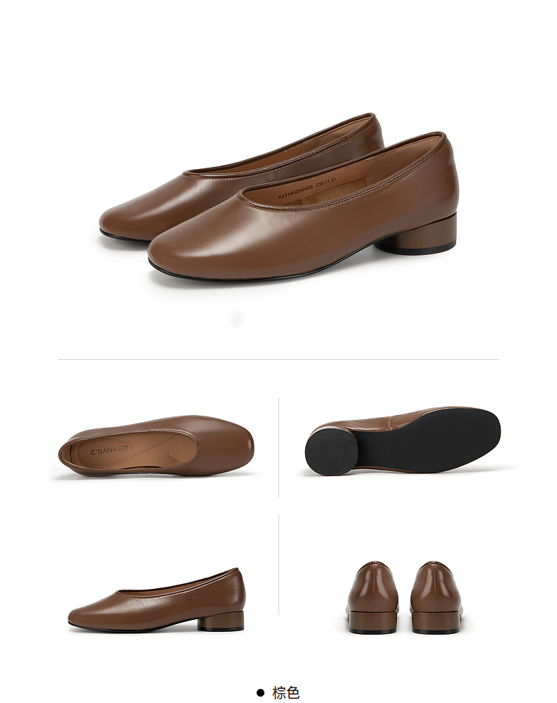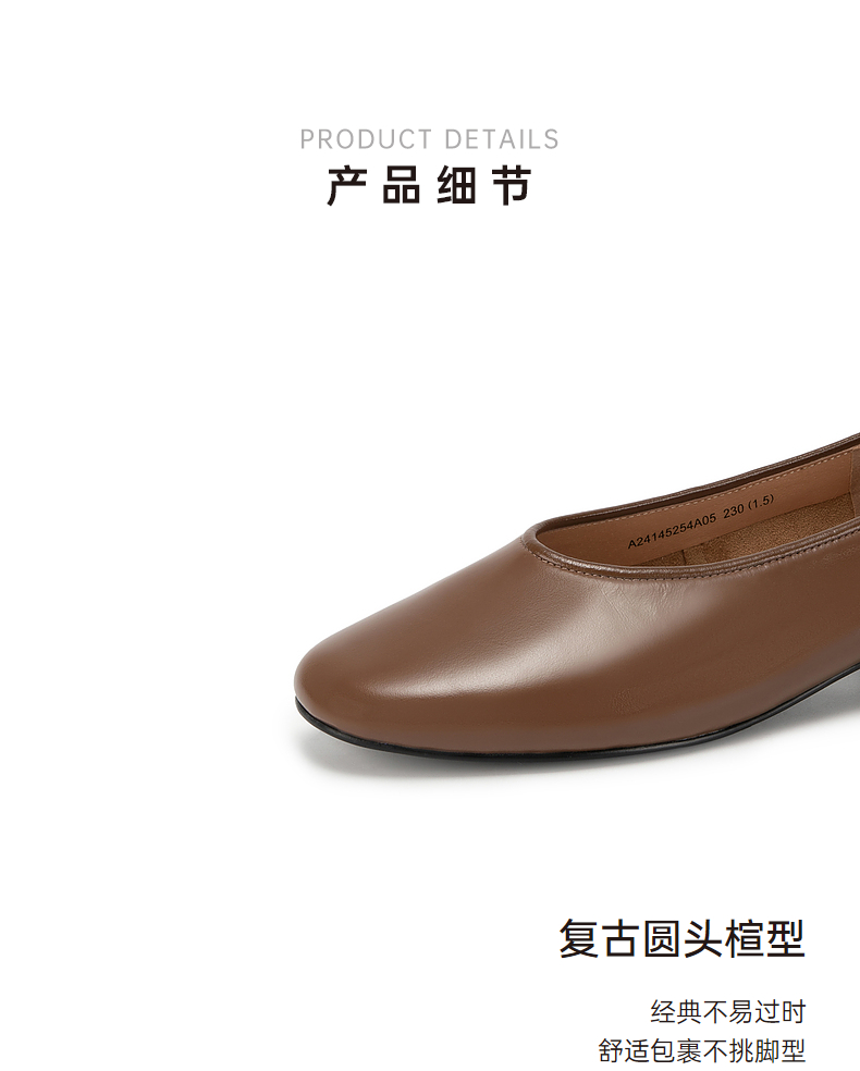 千百度低跟复古圆头单鞋女春季小香风温柔风晚晚鞋真皮A24145254