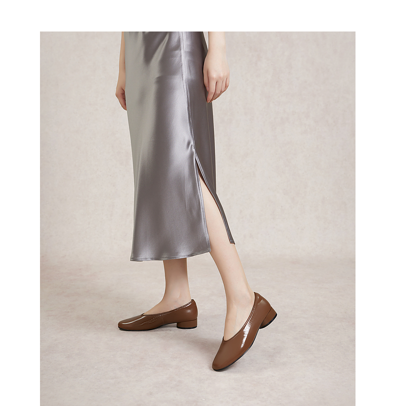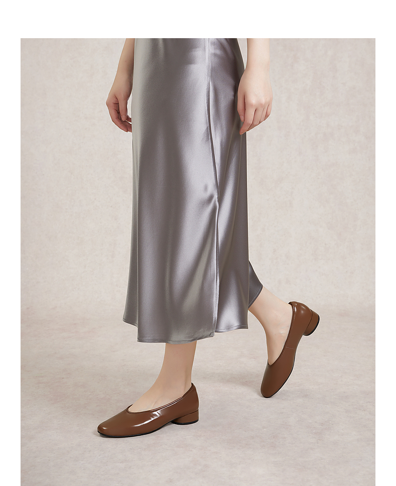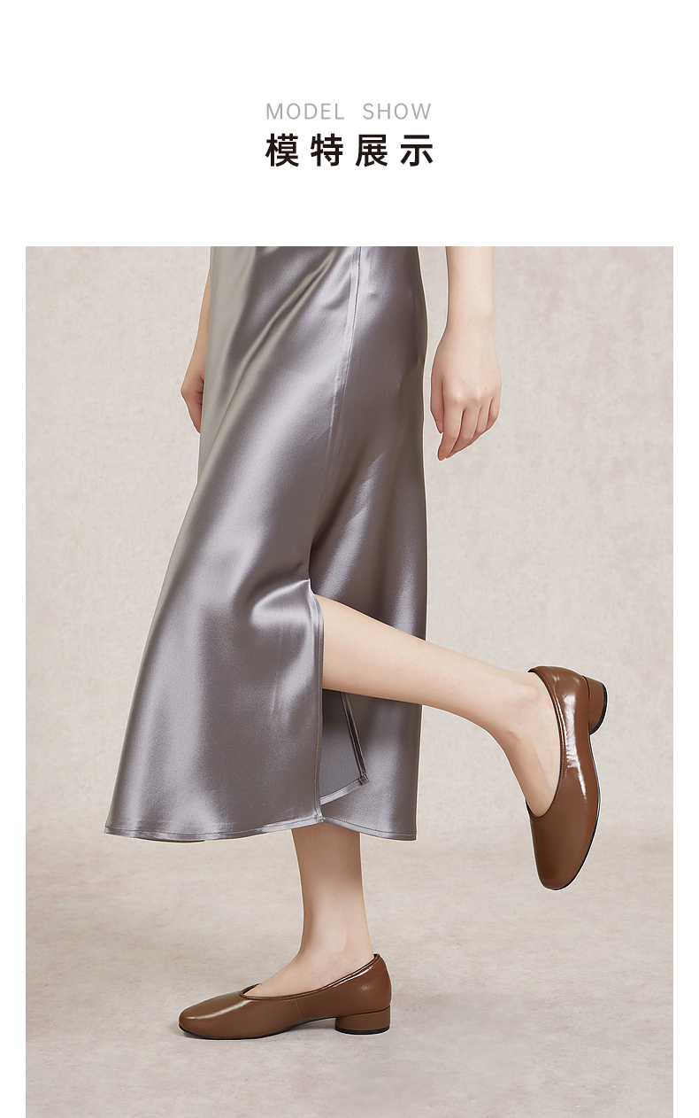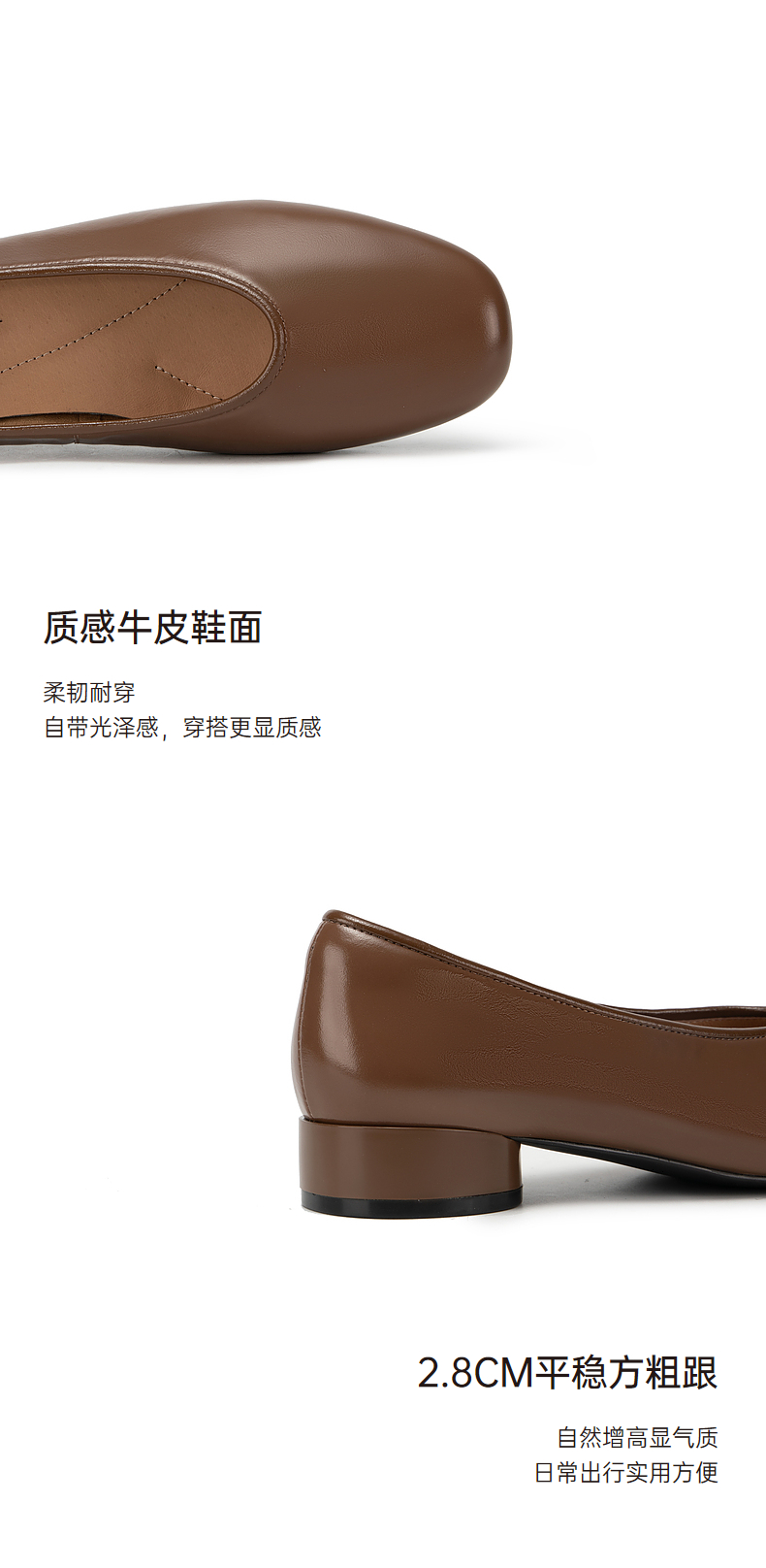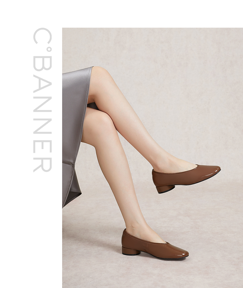 千百度低跟复古圆头单鞋女春季小香风温柔风晚晚鞋真皮A24145254