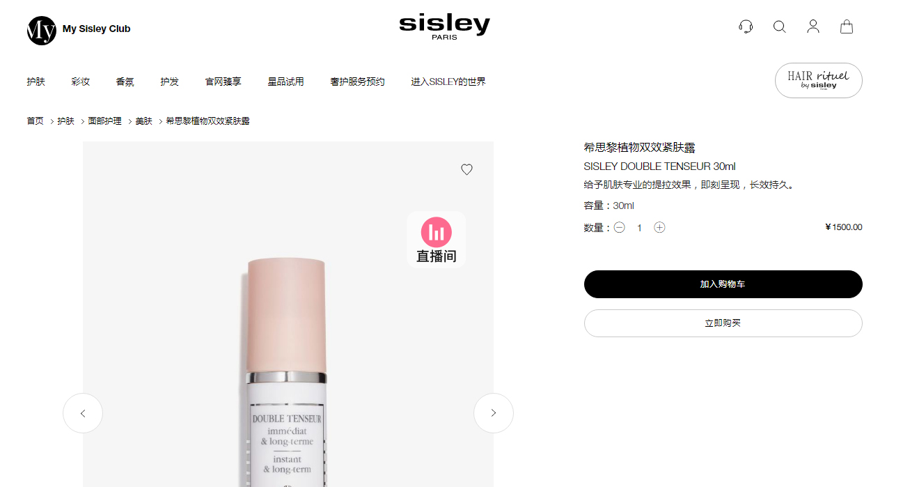 【品名】 Sisley希思黎植物双效紧肤露30ml