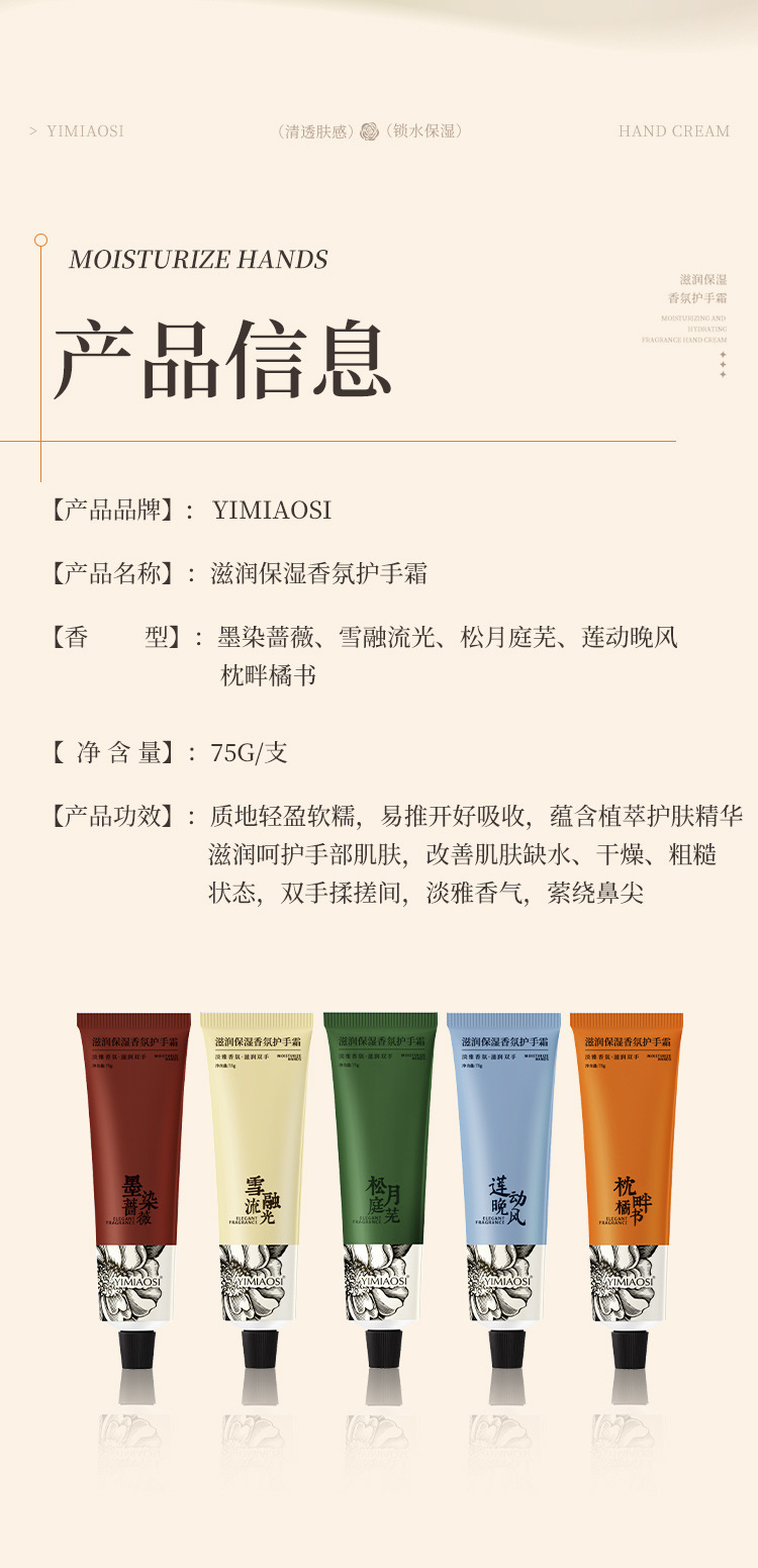 「五款香型」YIMIAOSI国风香水护手霜75g滋润补水护手霜洋甘菊小支护手霜便携美容护肤
