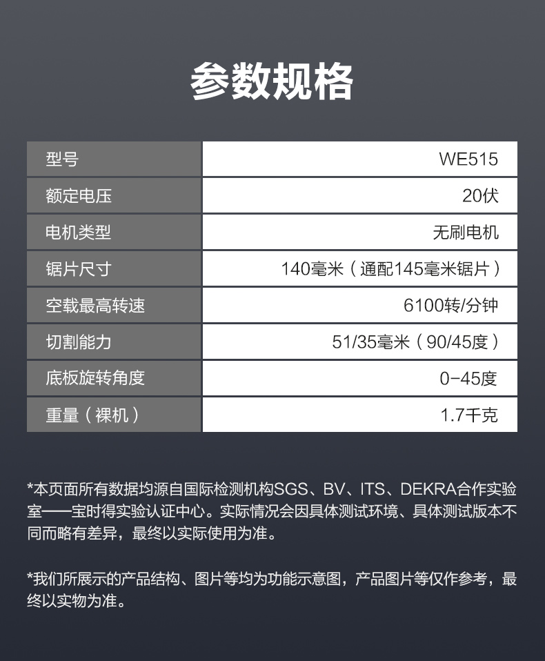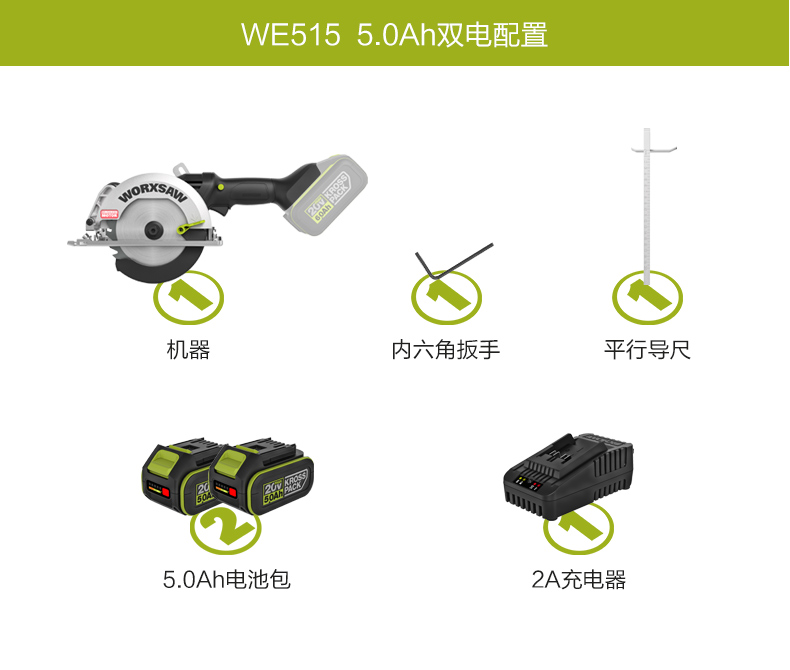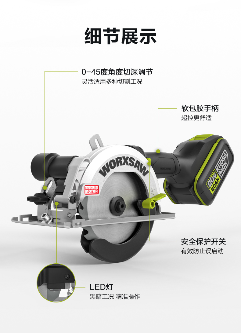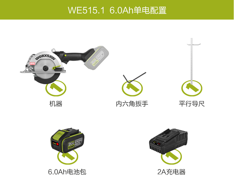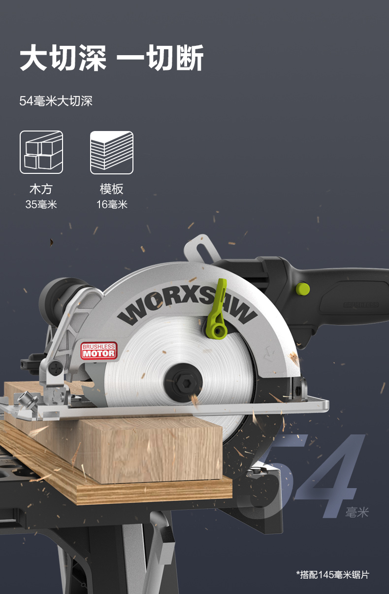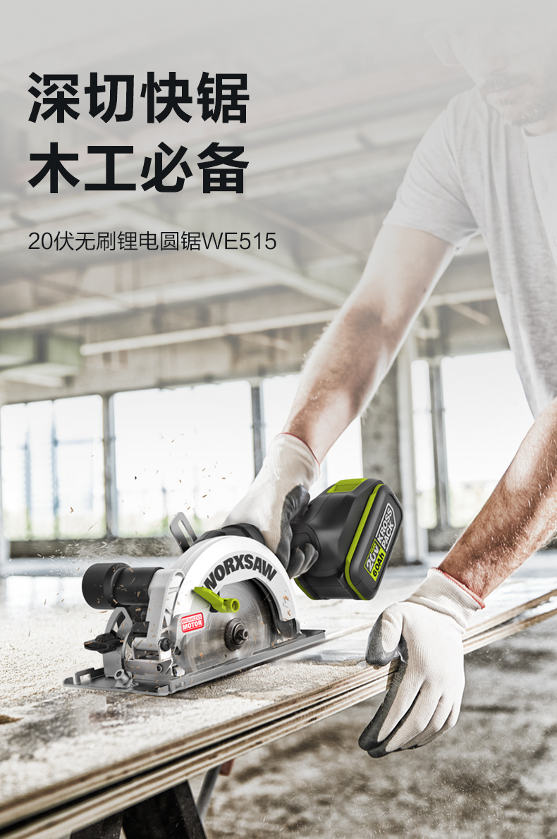 威克士无刷电锯WE515圆盘锯锂电木工专用电圆锯手提锯切割锯