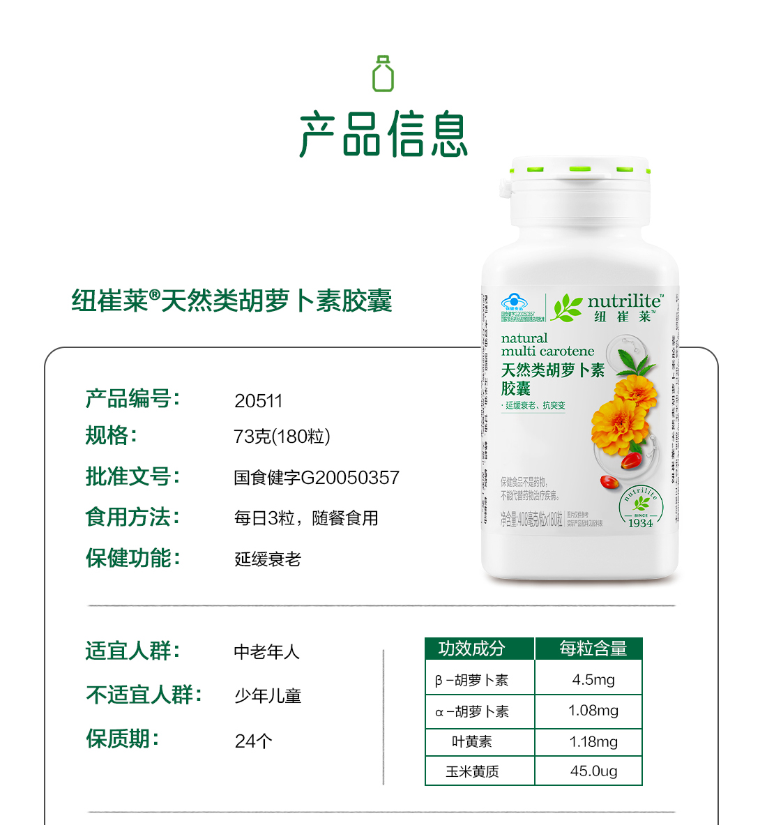 安利纽崔莱®天然类胡萝卜素胶囊180粒