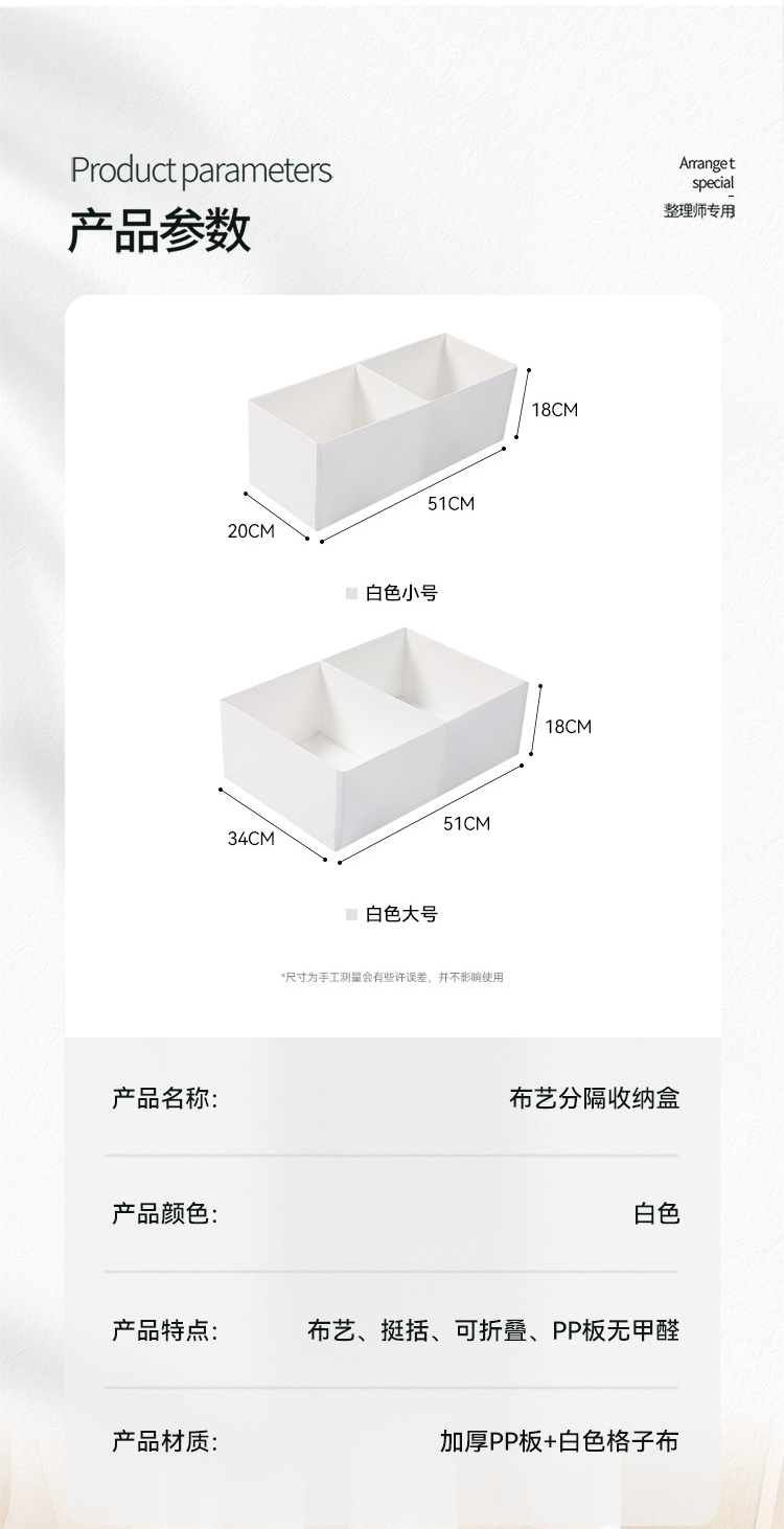 【自营】白色布艺收纳盒宜家斯图克同款分隔收纳衣服杂物整理储物盒