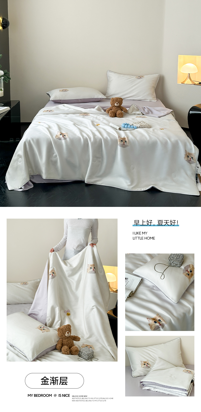 自然醒卡通60支天丝数码印花夏被四件套莱赛尔纤维凉感夏被薄款丝滑裸睡空调被可水洗TD