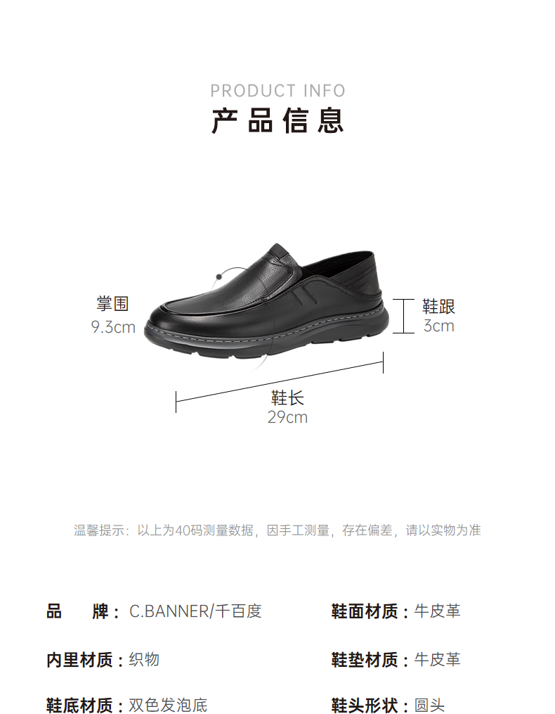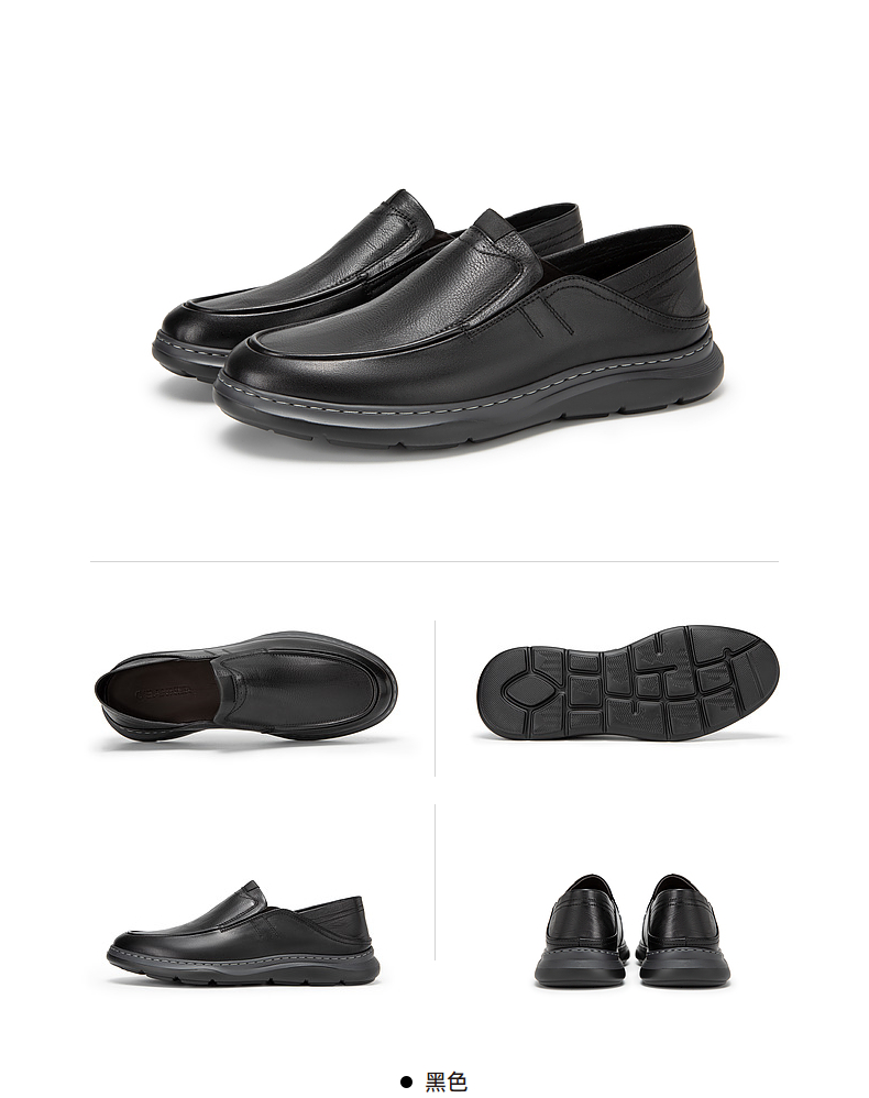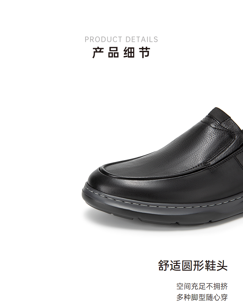 千百度男鞋大头皮鞋春夏男士商务休闲真皮一脚蹬正装皮鞋A24135335
