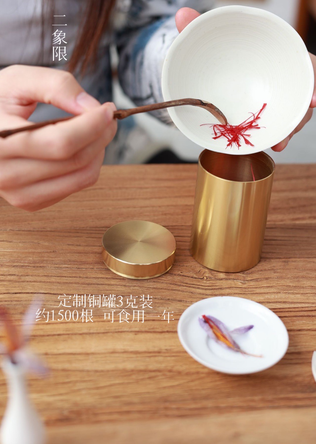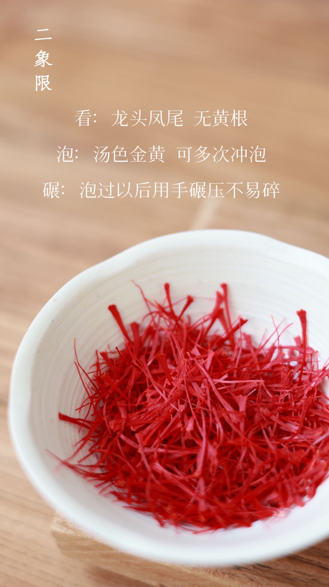10000朵原花仅50g花丝,50g花丝甄选出3g特级,每罐藏红花1500根左右,数字代表着二象限的品质。