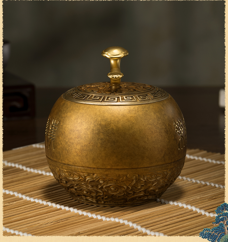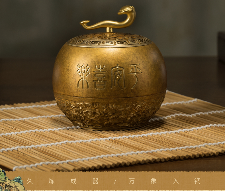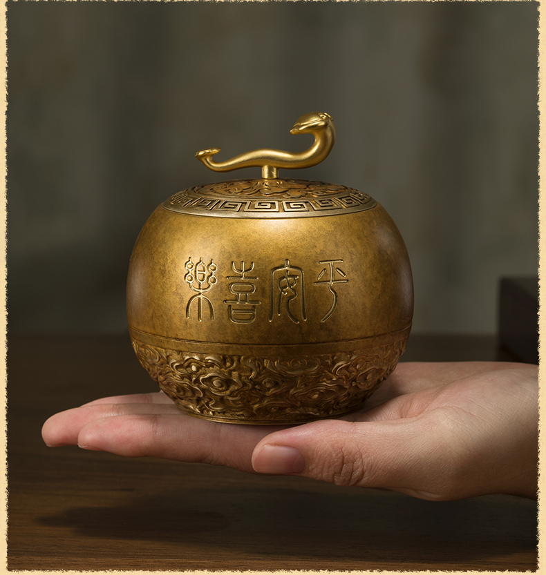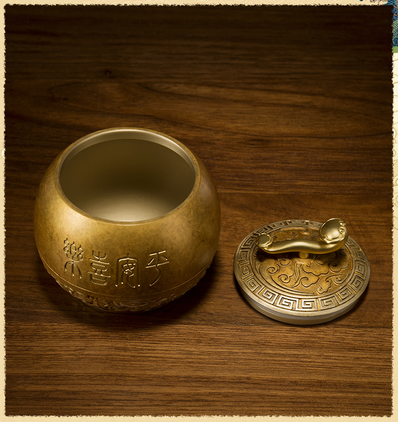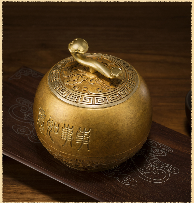 铜师傅《如意小茶罐》客厅桌面茶罐铜摆件 家居装饰工艺品