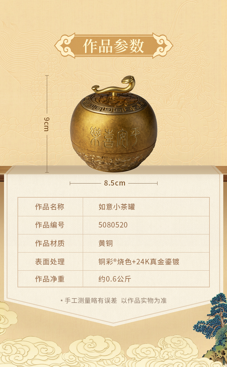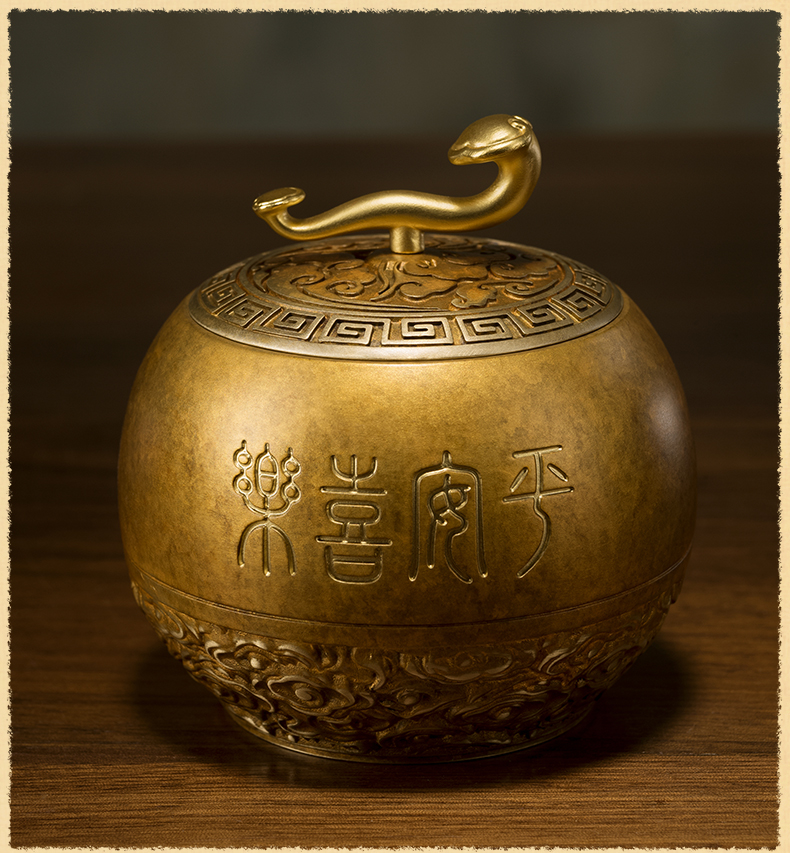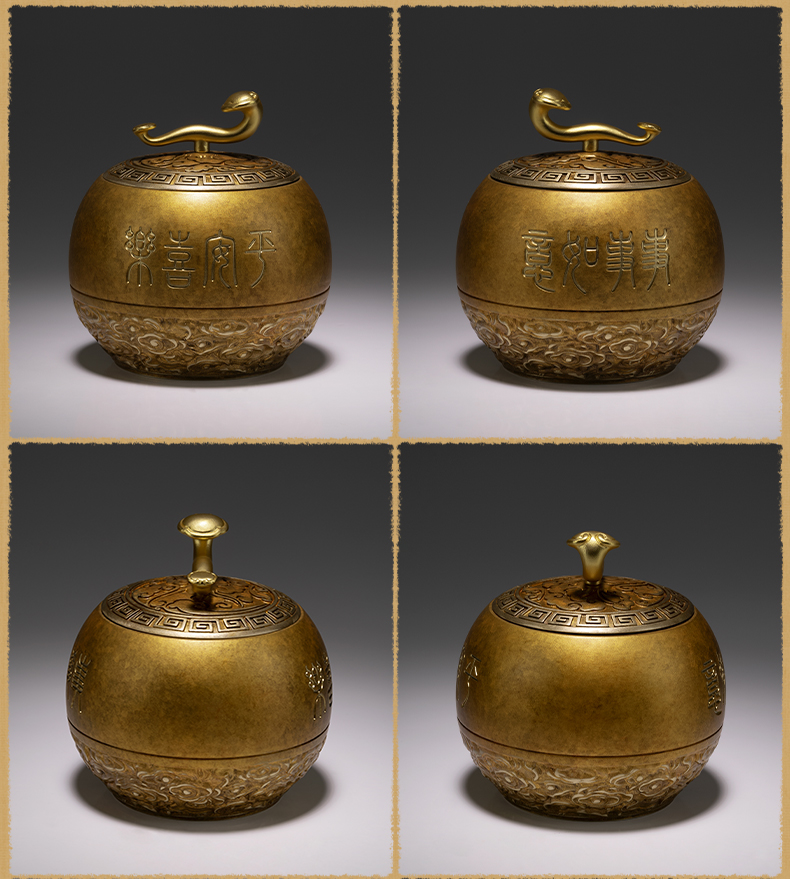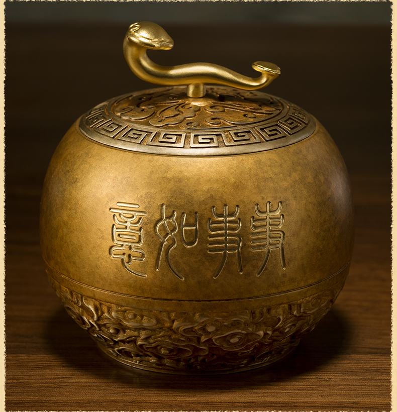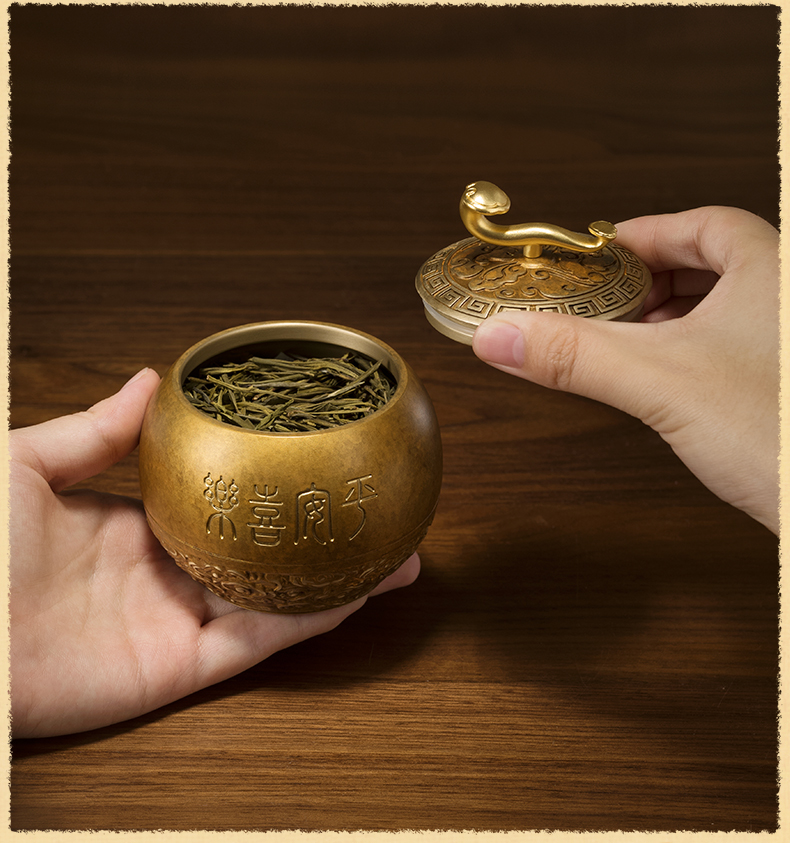 铜师傅《如意小茶罐》客厅桌面茶罐铜摆件 家居装饰工艺品