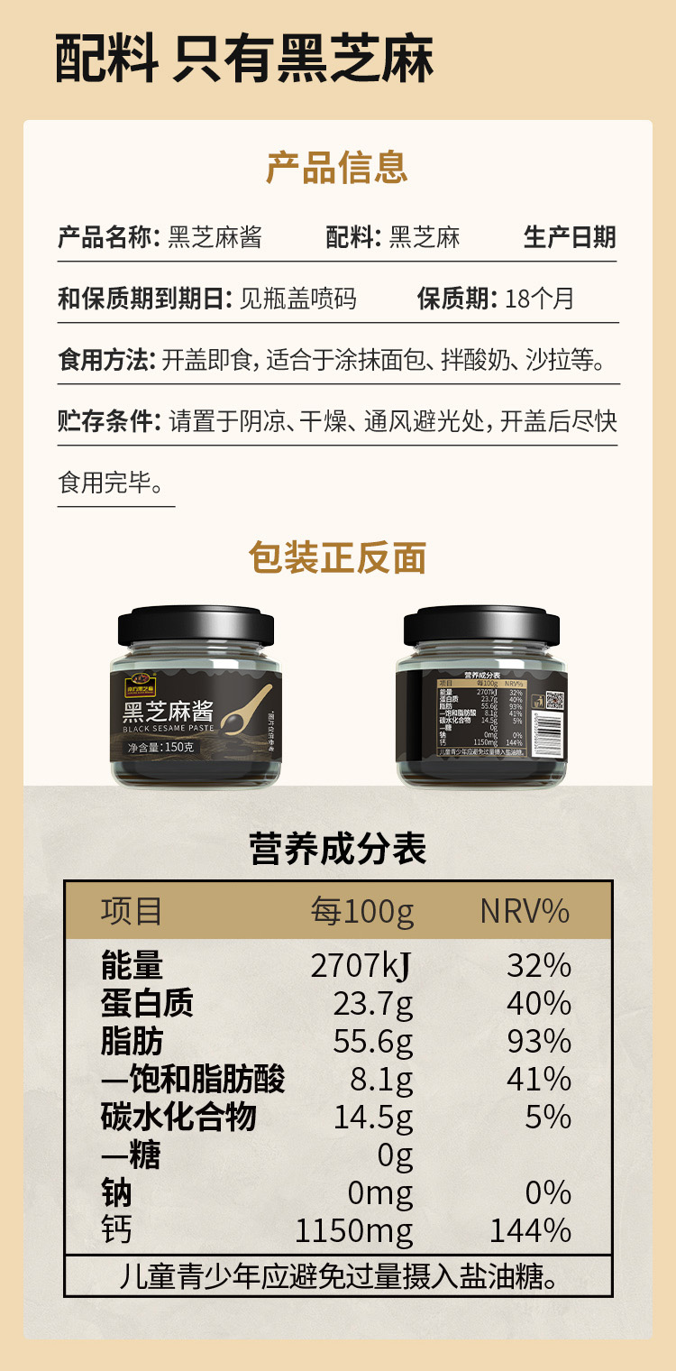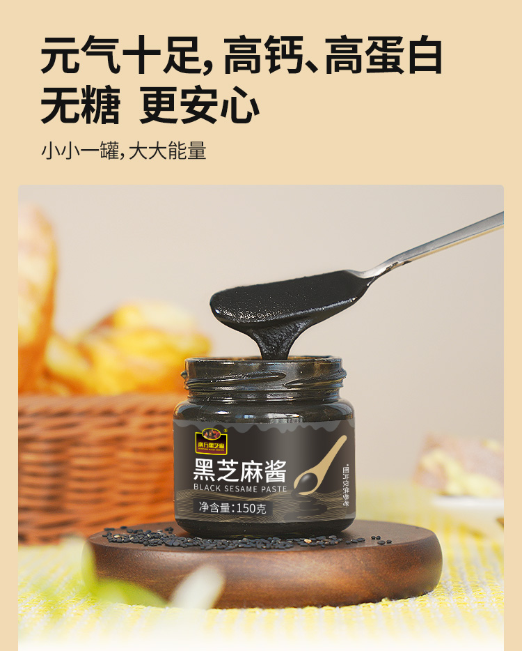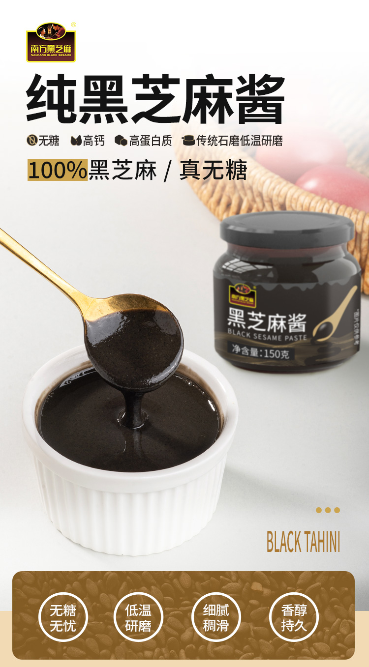南方黑芝麻黑养黑纯黑芝麻酱150g醇香高钙低温石磨研磨辅吐司儿童面包吐司酱食养