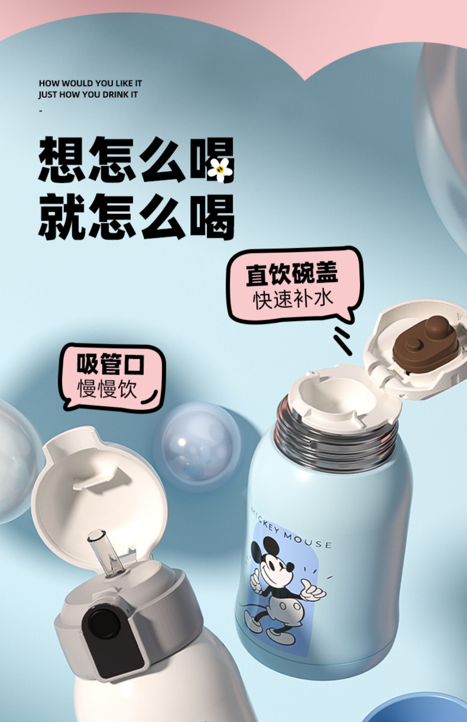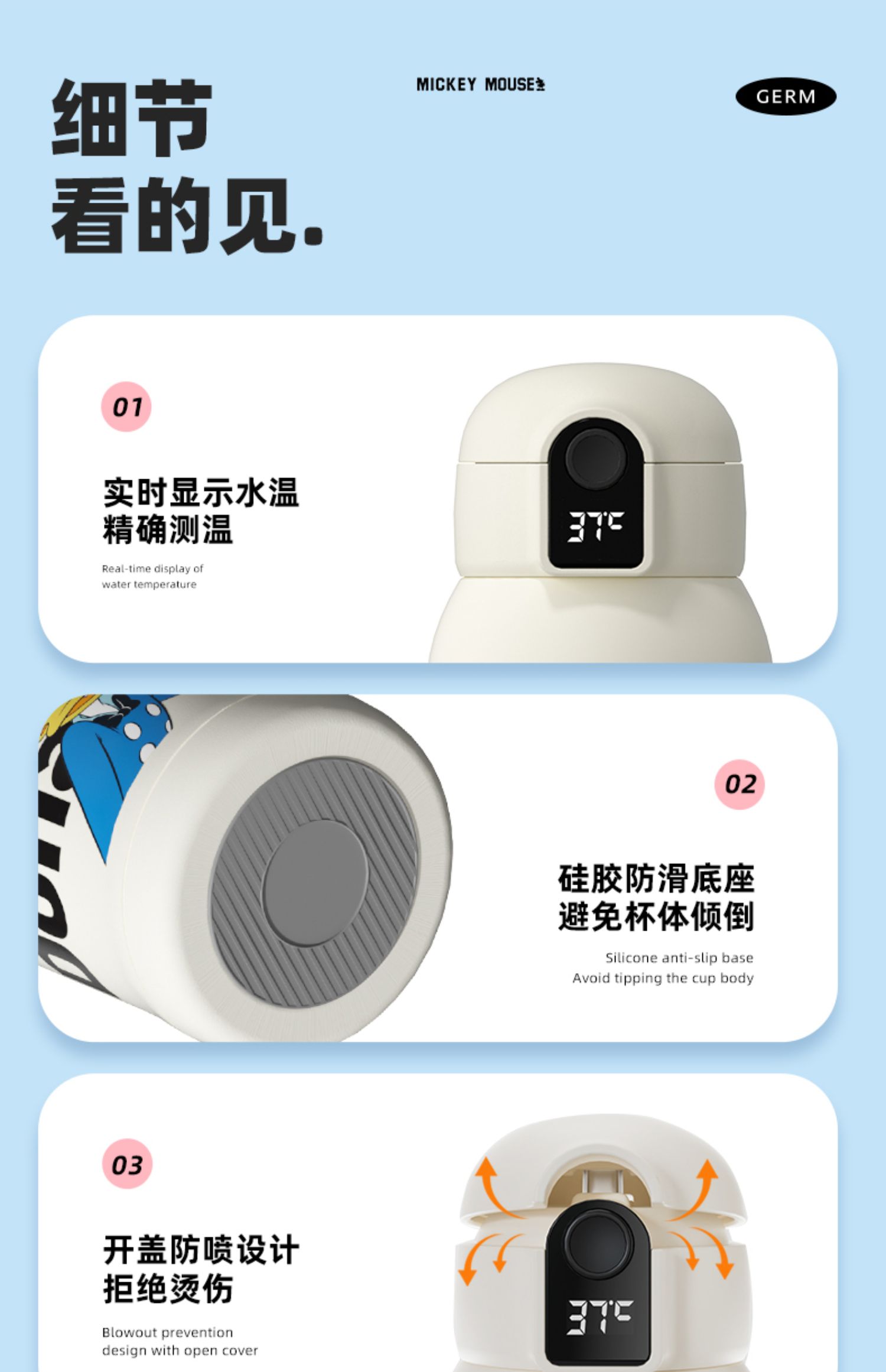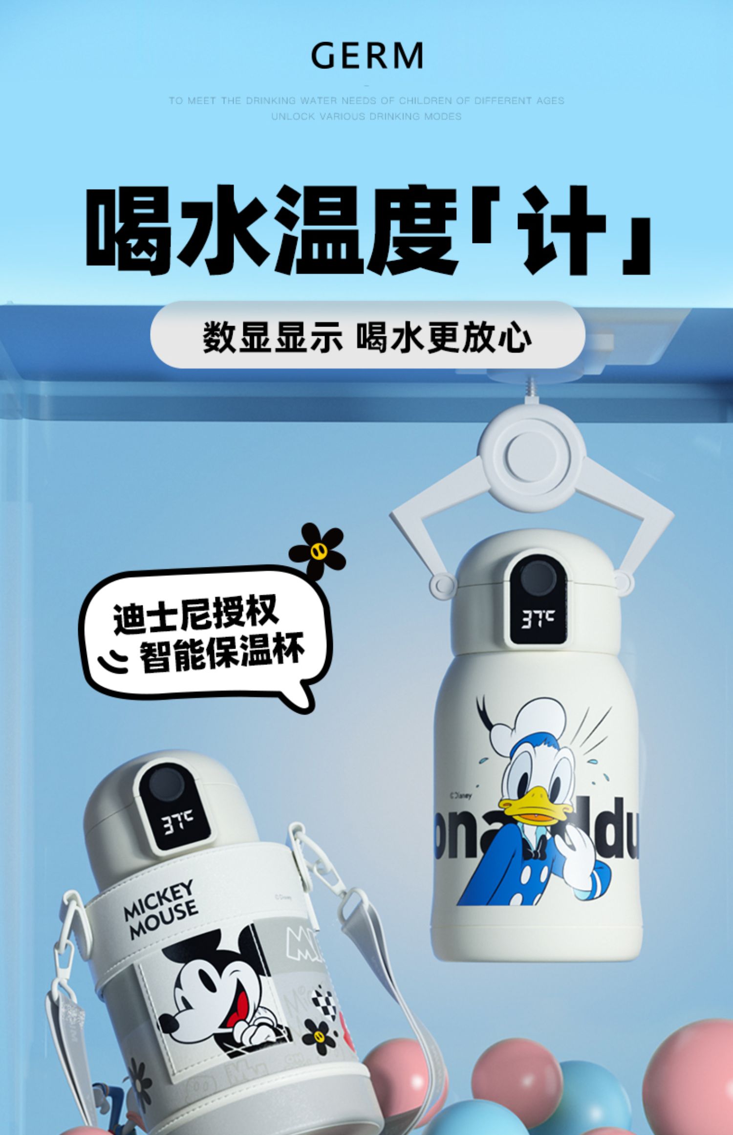 格沵GERM米奇系列智能儿童保温杯带吸管水杯316双盖两用500ML