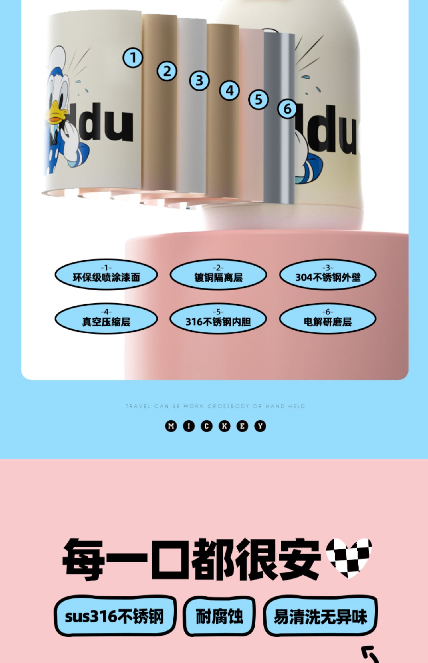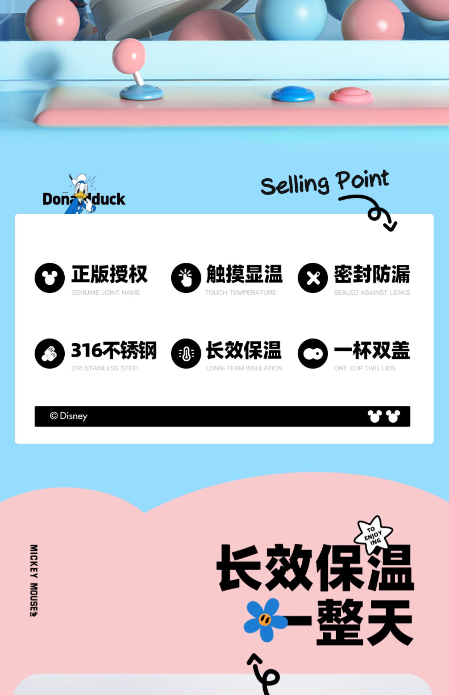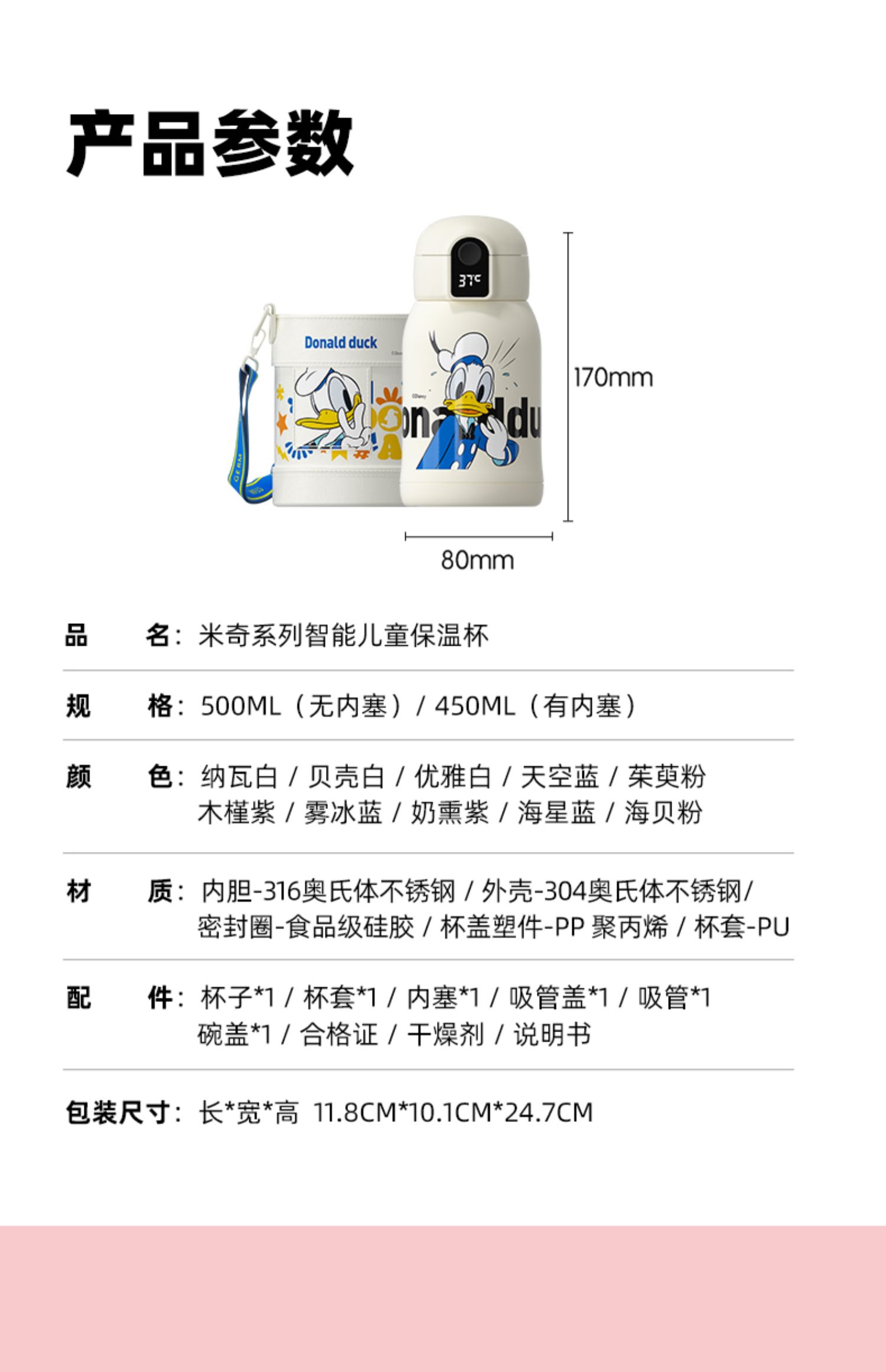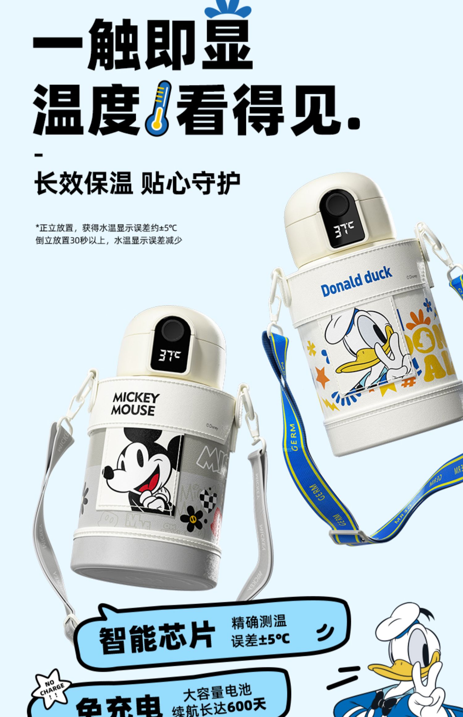 格沵GERM米奇系列智能儿童保温杯带吸管水杯316双盖两用500ML