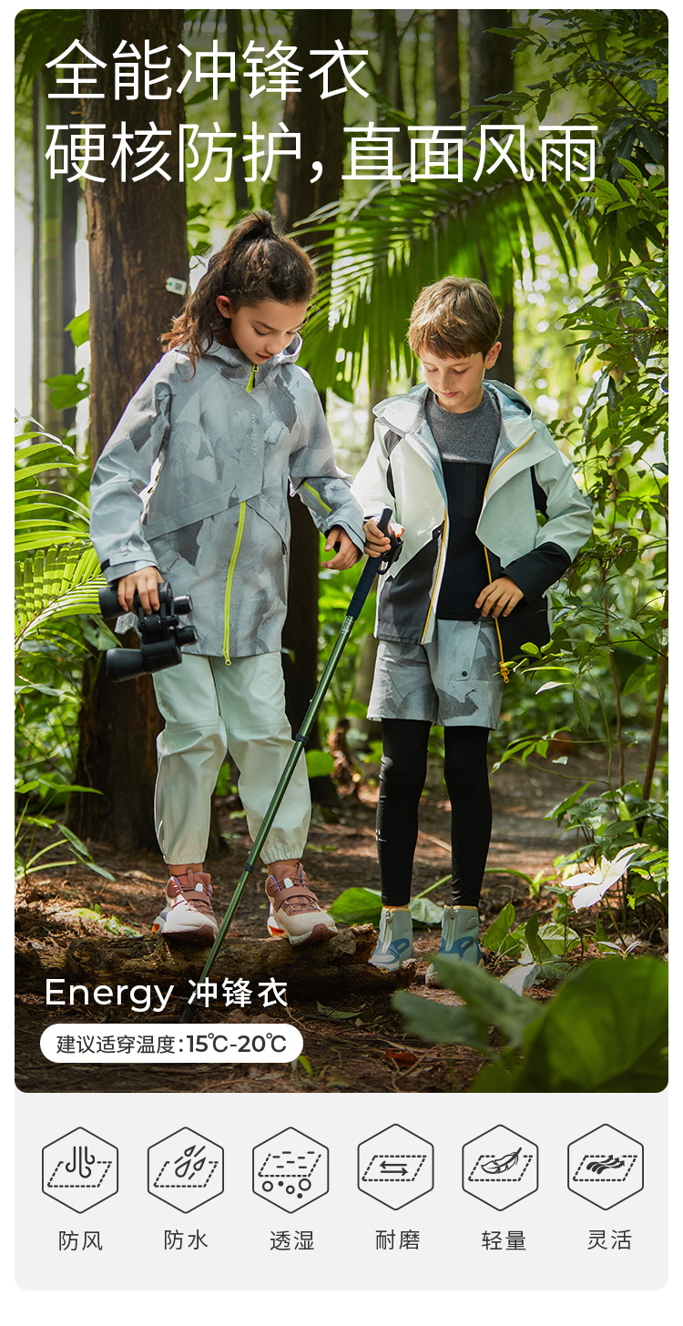 moodytiger儿童硬核冲锋衣防风防水秋季新品运动户外服M33114002/M33214001【DR】