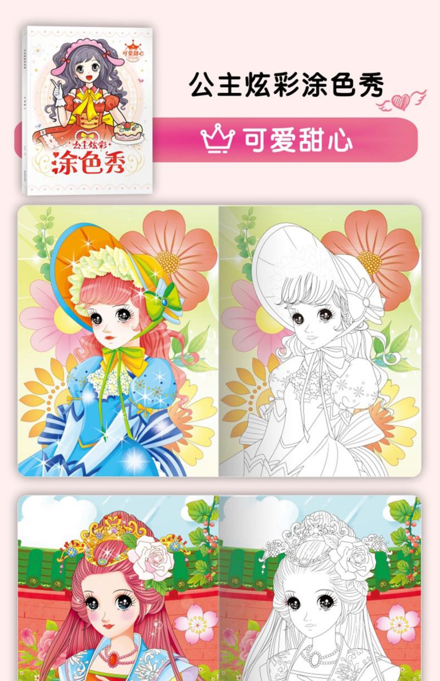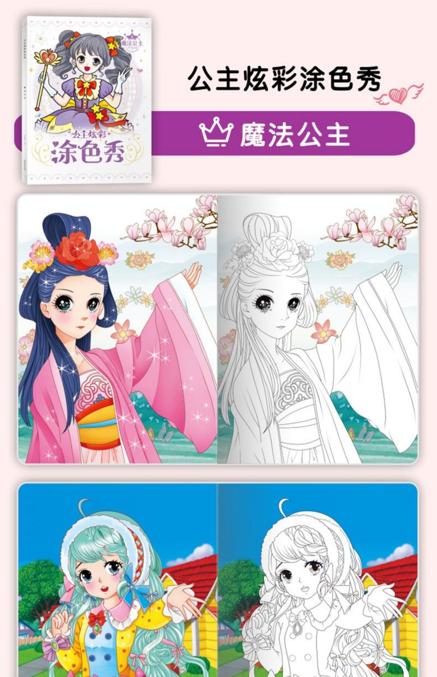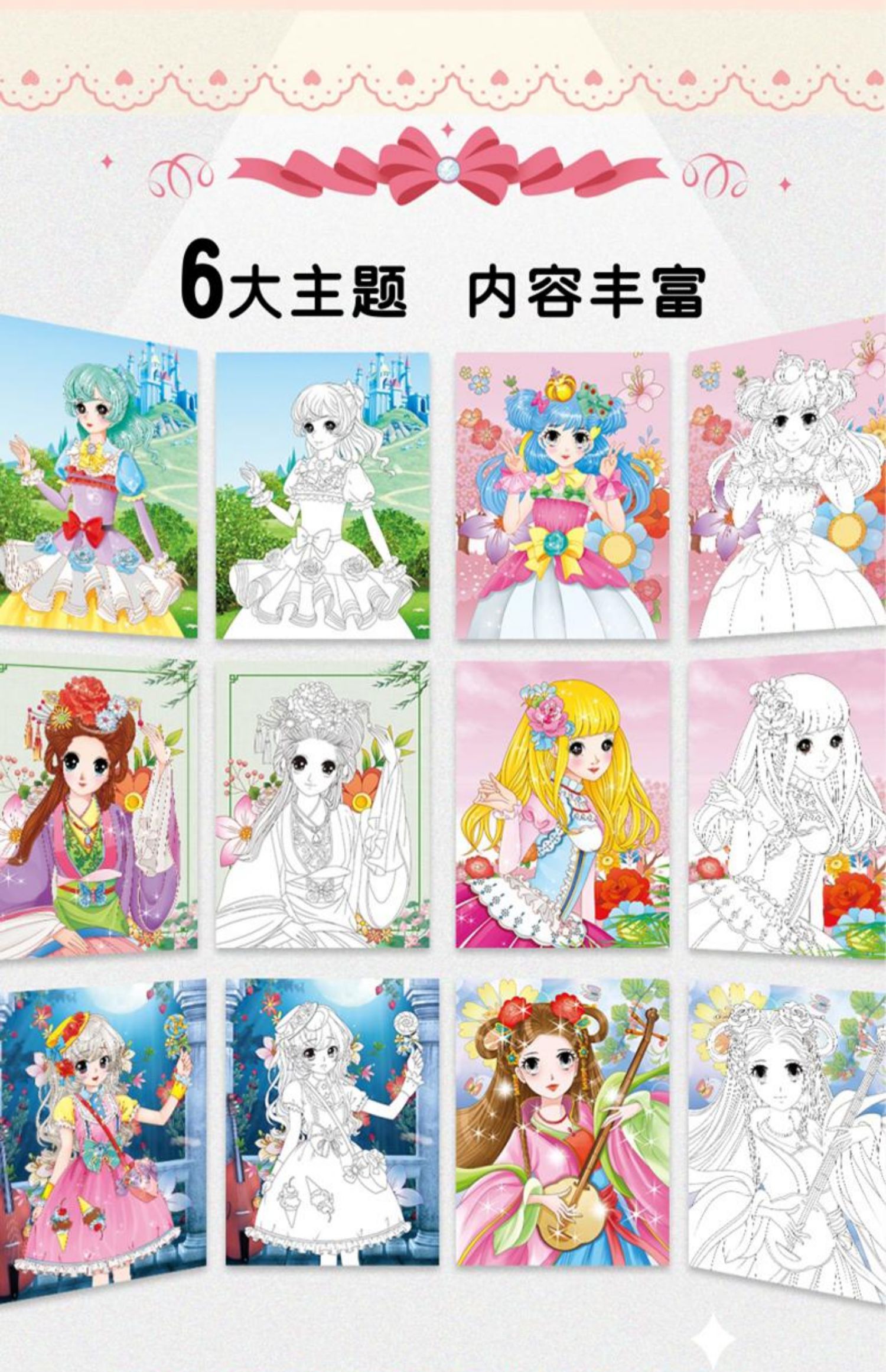公主涂色换装秀儿童画画本幼儿园涂色书宝宝填色涂鸦绘画本图画册