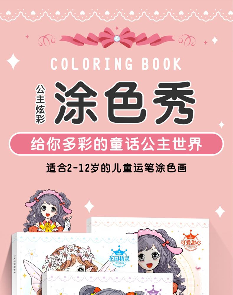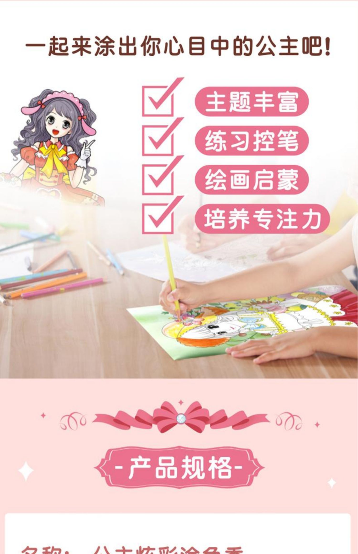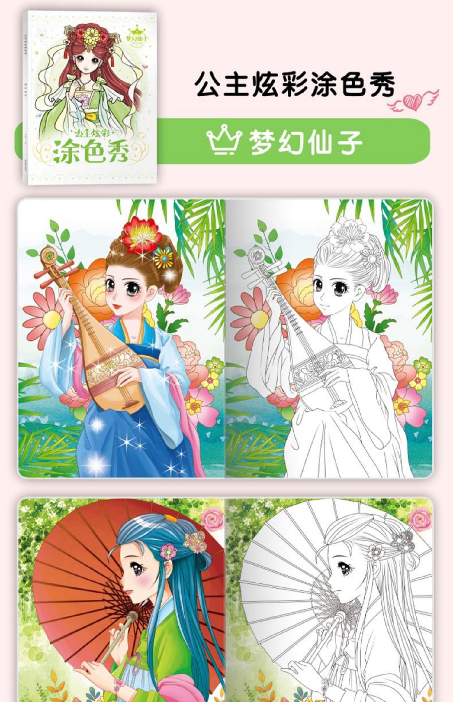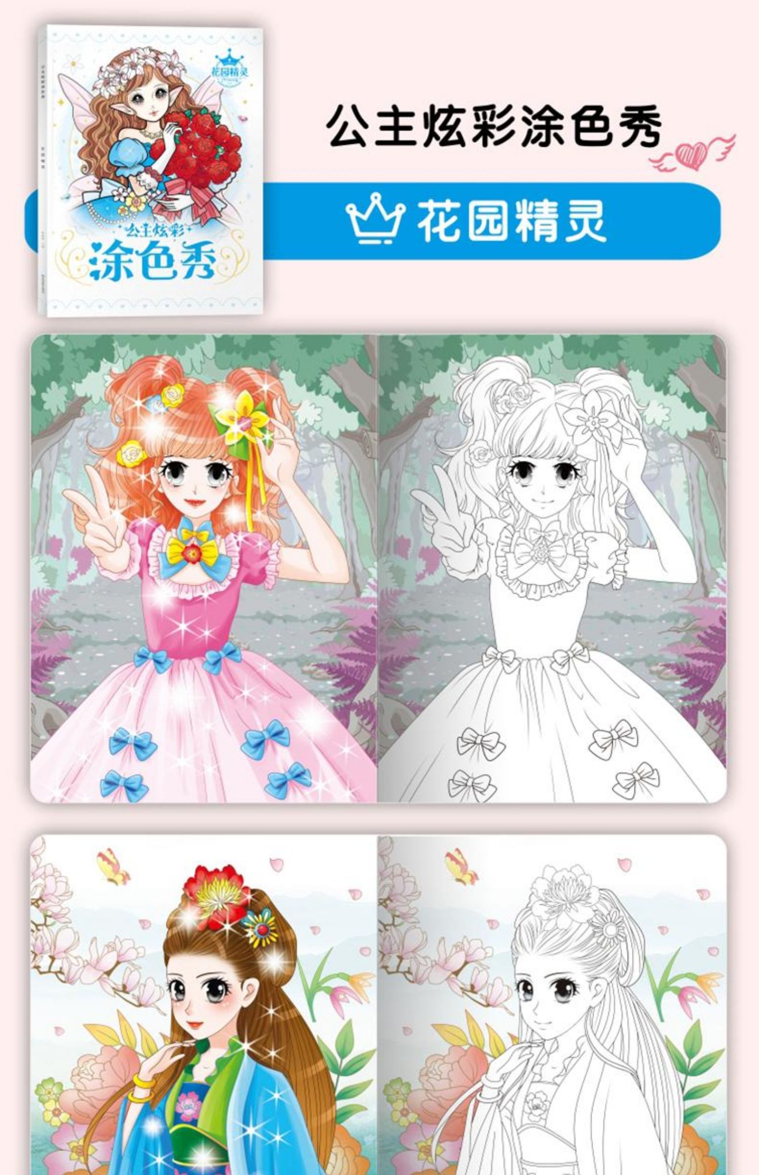 公主涂色换装秀儿童画画本幼儿园涂色书宝宝填色涂鸦绘画本图画册