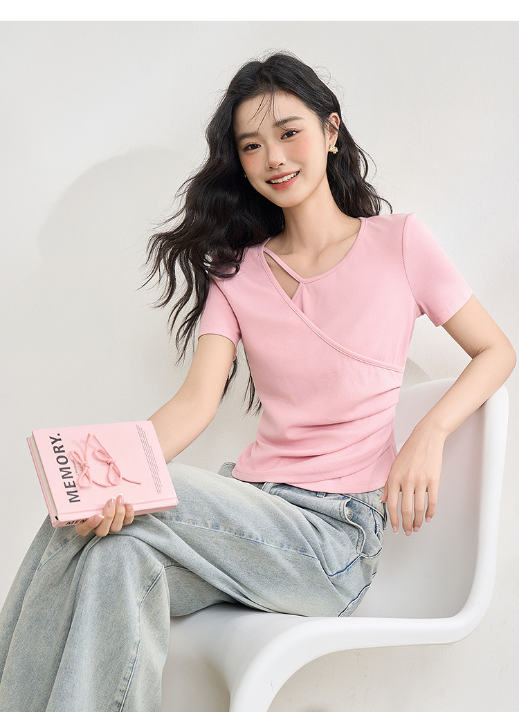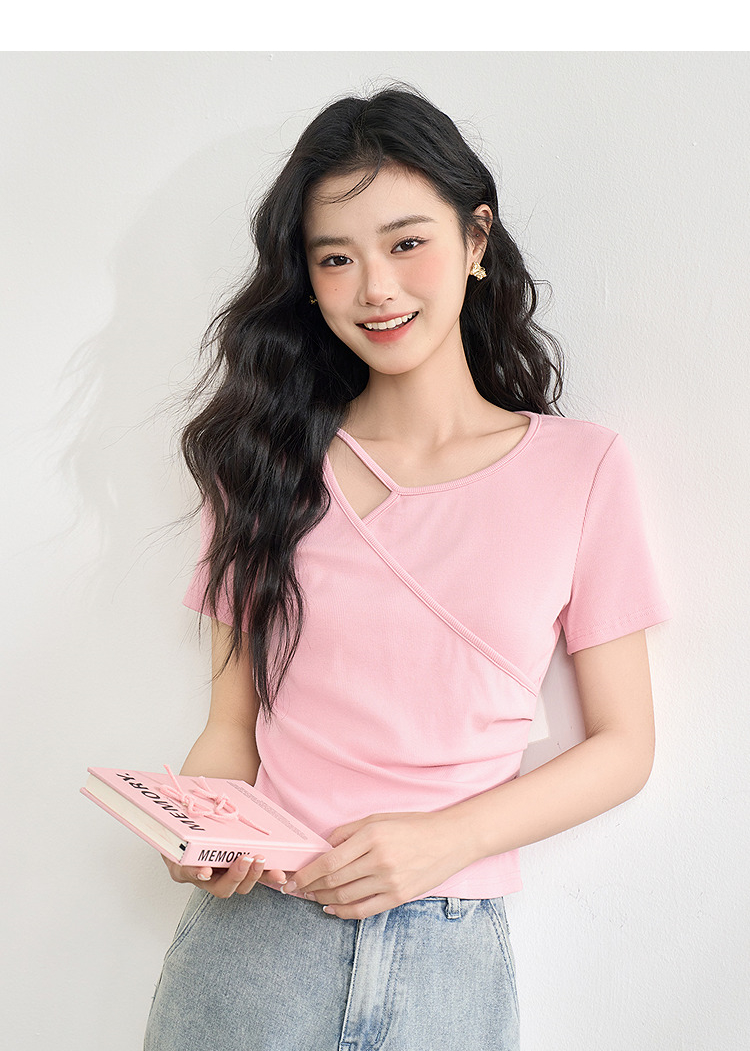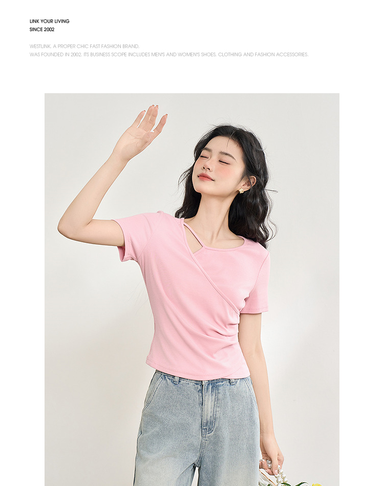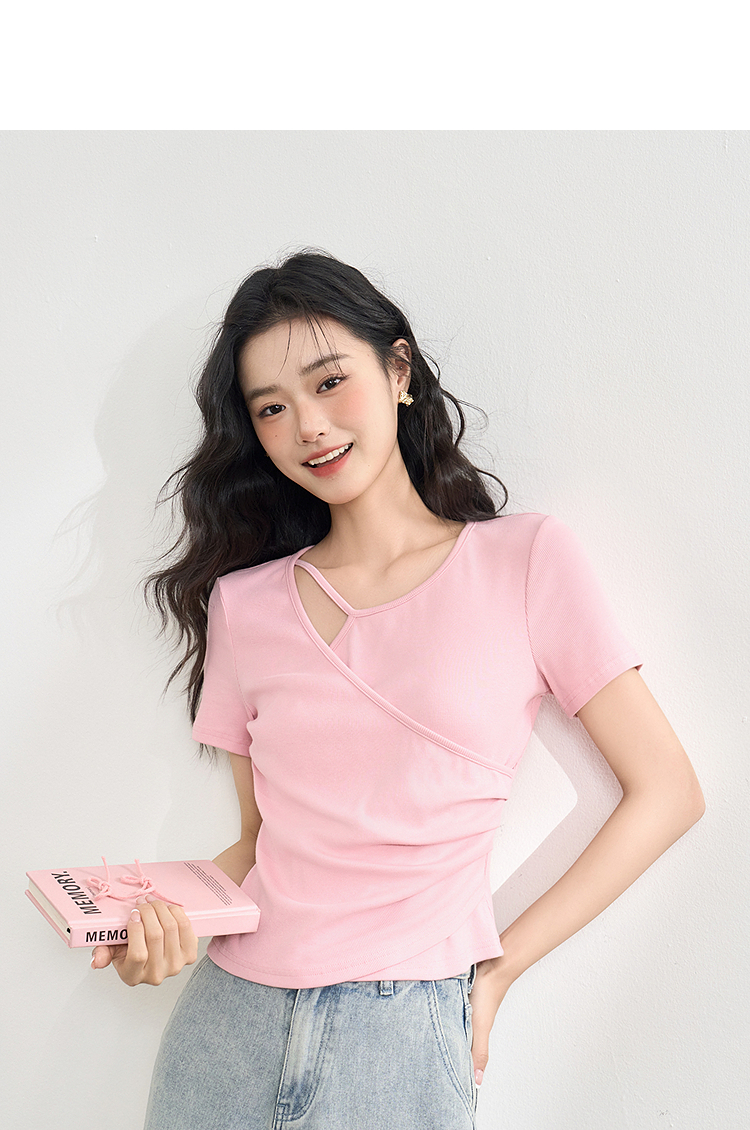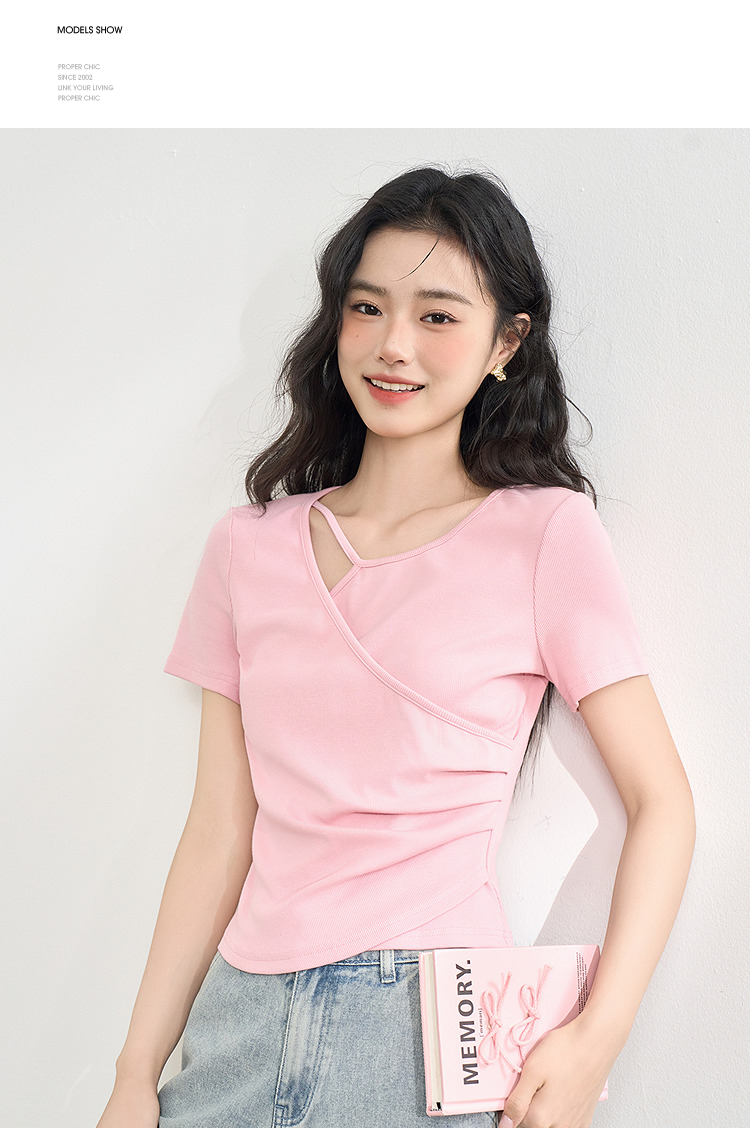 【不规则剪裁】设计感短袖T恤女夏季捏褶收腰短款T恤V0950597