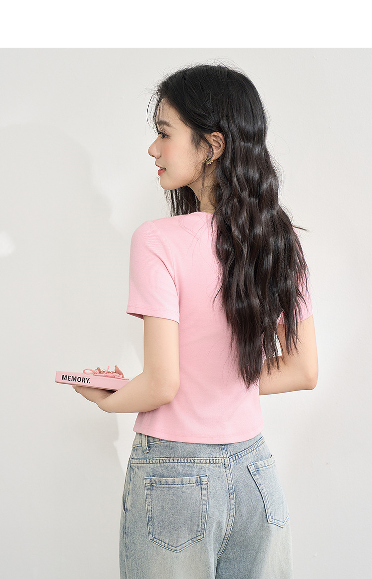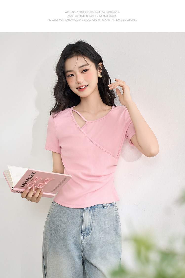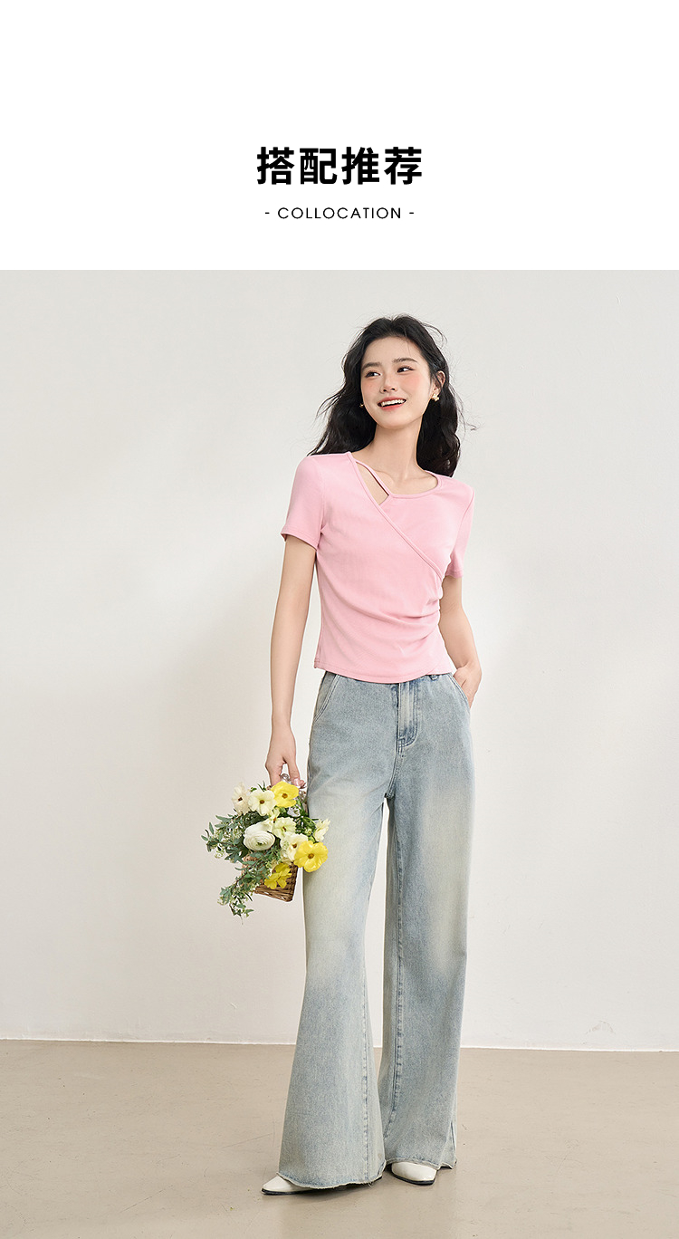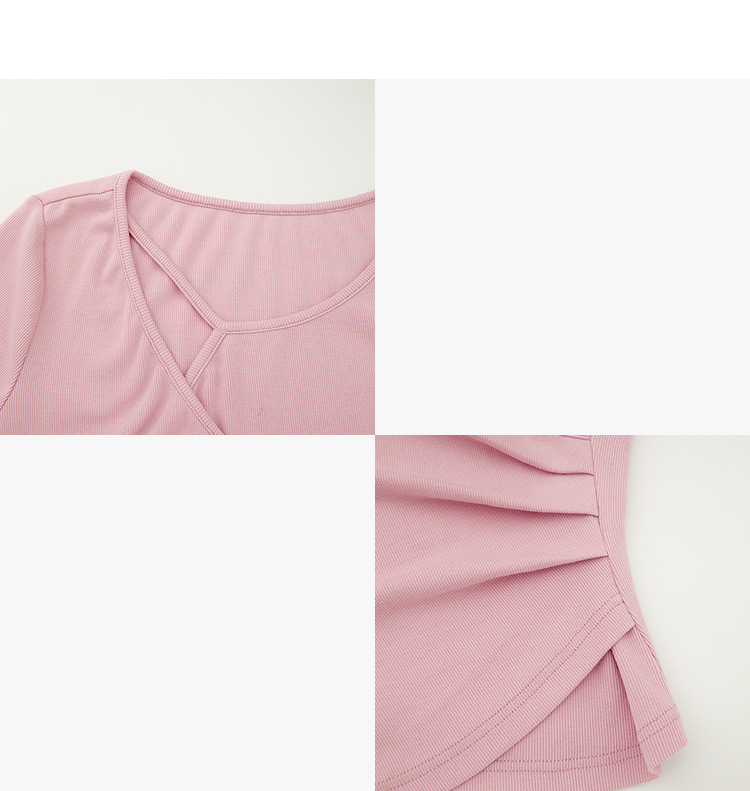 【不规则剪裁】设计感短袖T恤女夏季捏褶收腰短款T恤V0950597