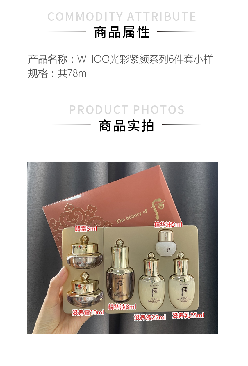【1.9 大牌再降价】WHOO光彩紧颜系列6件套小样共78ml(23年12月)