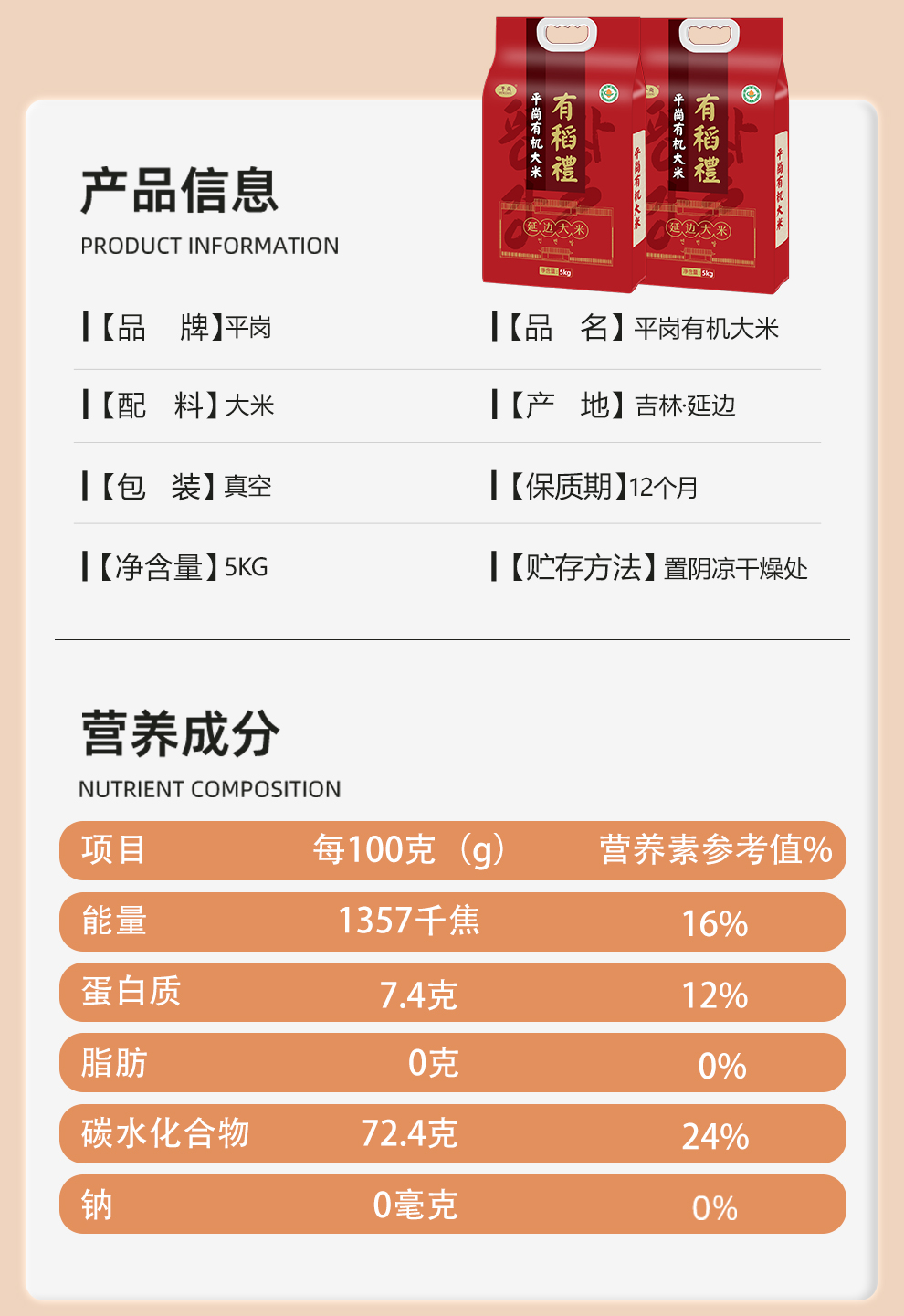【吉林】平岗大米有稻礼有机系列家庭装5kg