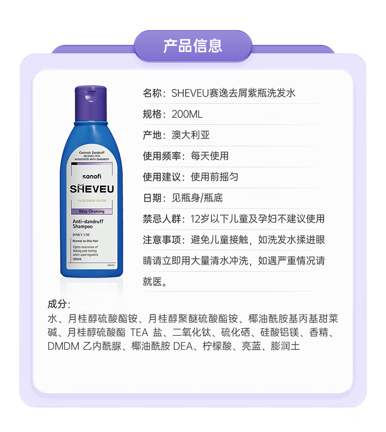 【海豚美购】赛逸【新旧版本随机发】去屑控油紫瓶洗发水200ml