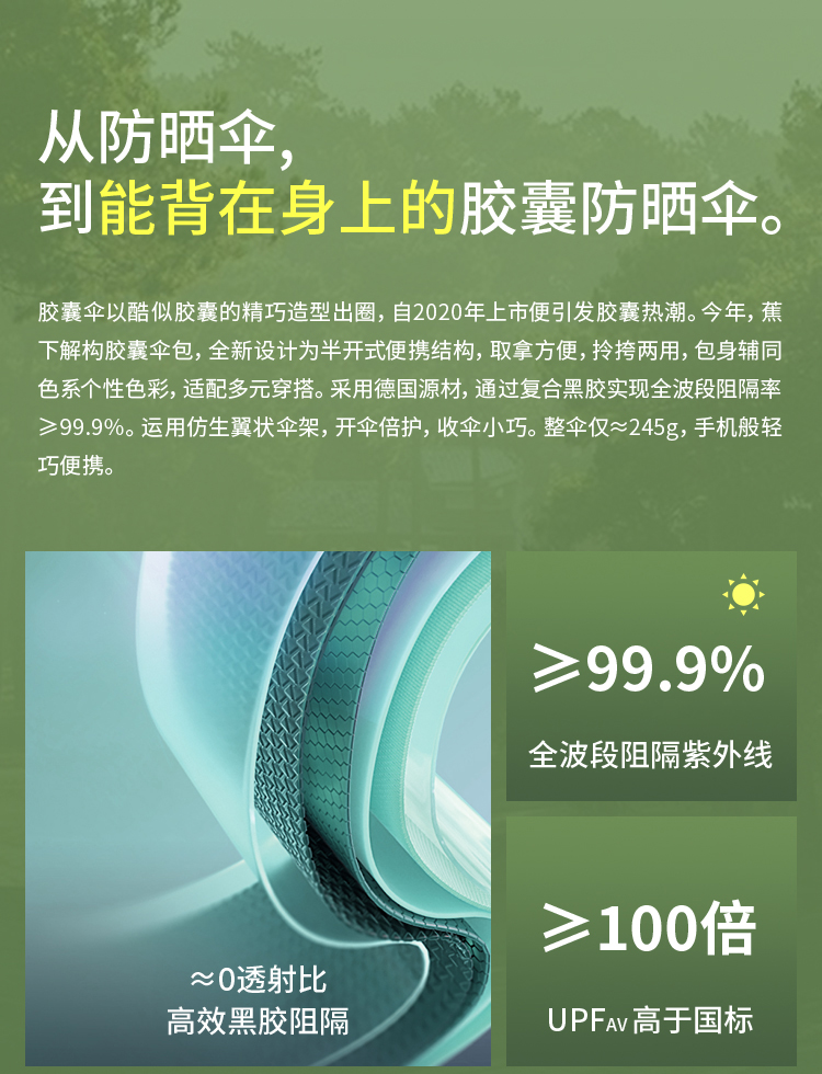 蕉下胶囊伞BM65124太阳伞防晒伞轻巧防紫外线折叠雨伞户外遮阳伞
