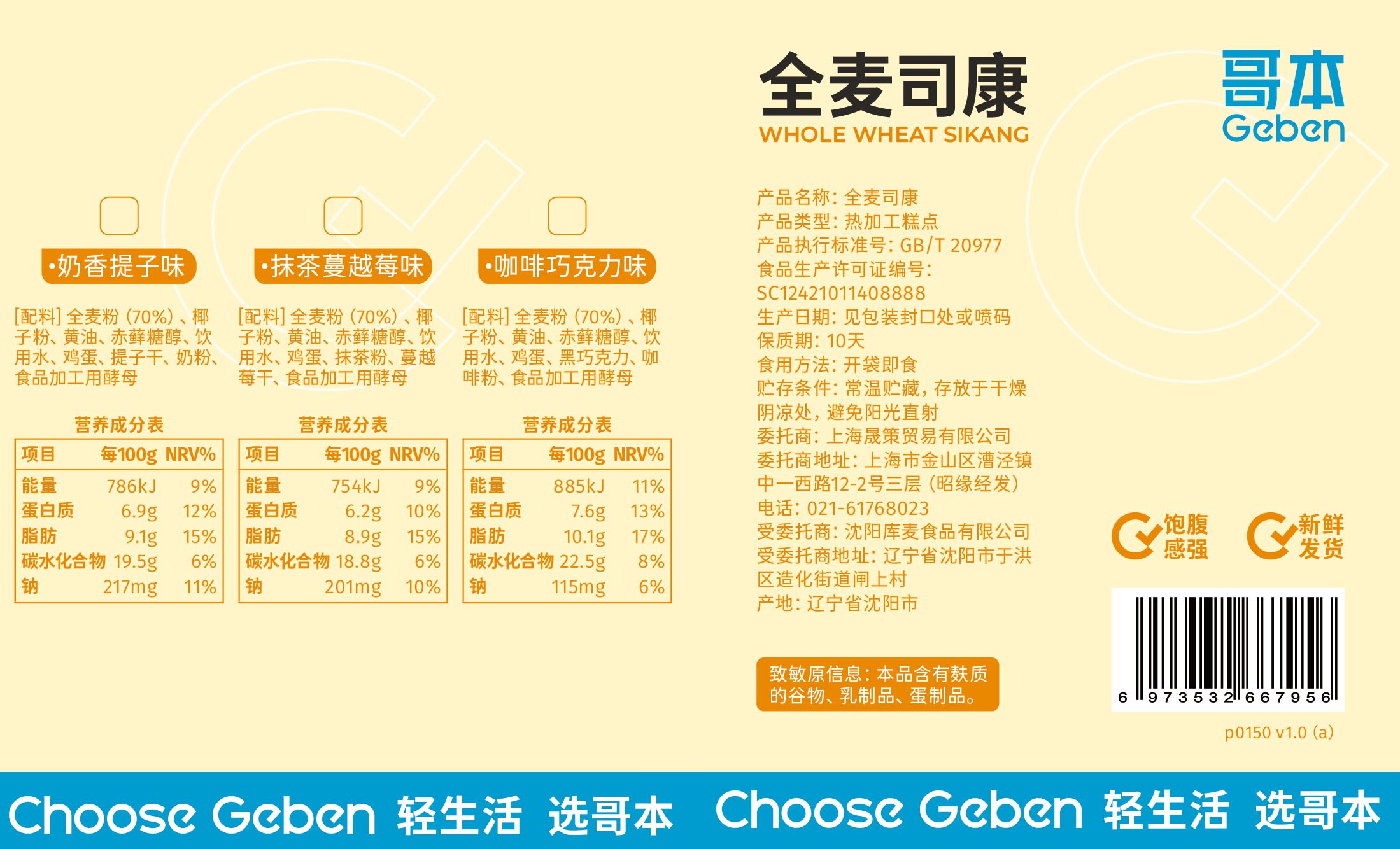【🍜8.18-8.20健康低卡好味专场】自律系甜品·哥本全麦司康 粗粮配方 控卡饱腹 每枚仅约81~95大卡 10天短保 拒绝“科技狠活”!健康放心吃!