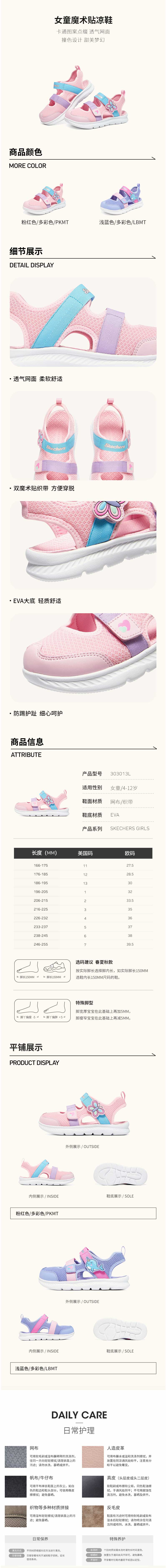 小斯凯奇童鞋女童包头凉鞋夏季新款可爱大童休闲鞋303031
