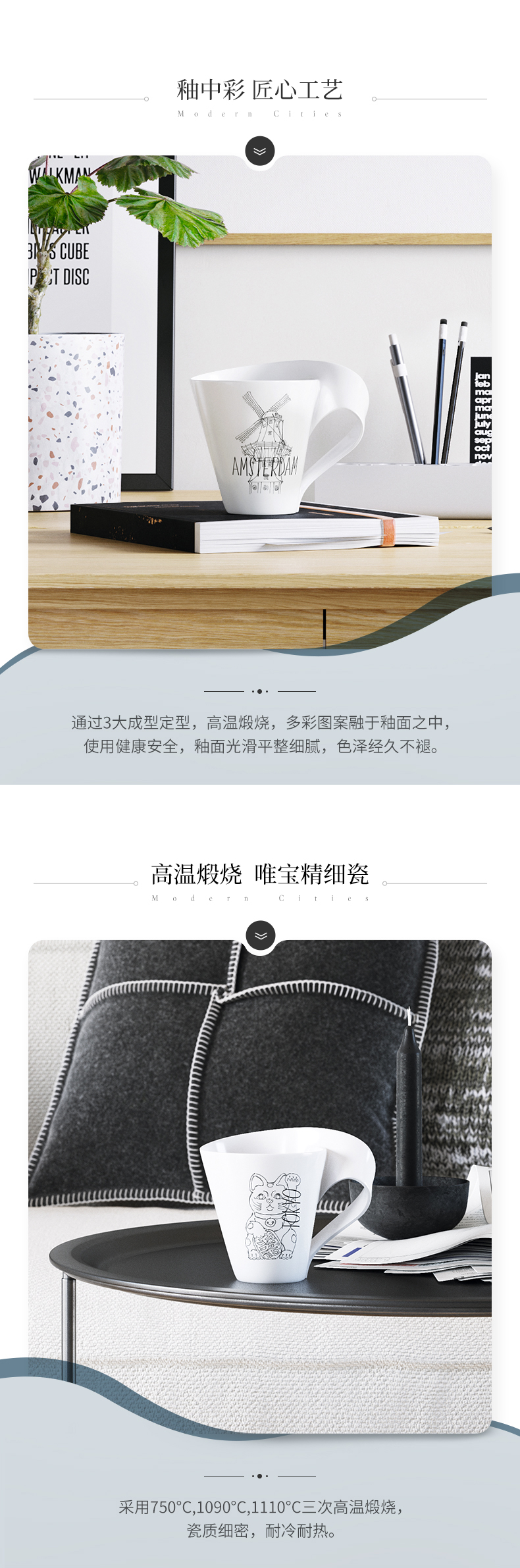 唯宝马克杯字母咖啡杯陶瓷杯子摩登都会
