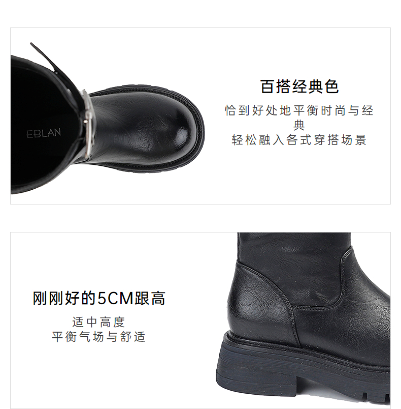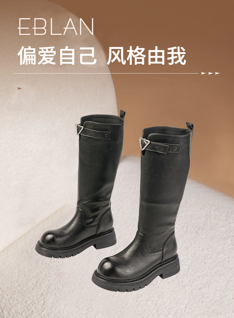 伊伴冬季酷飒有型骑士靴百搭经典色骑士靴B25505307