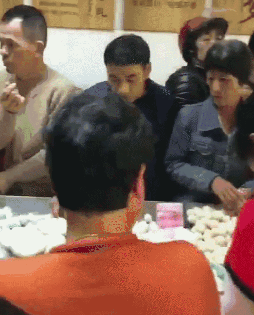 只见梁师傅像拥有铁砂掌一样,一边搅拌一边击打鱼泥,短短5分钟已摔打了数百次。