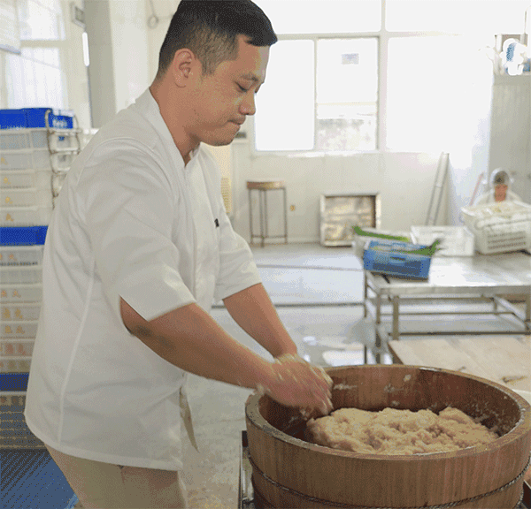 如果说剔刺取肉是“难”,那接下来的摔打鱼泥步骤就是“累”。要手工摔打鱼泥1000次,直至鱼浆上劲。