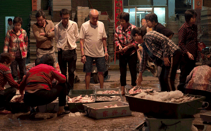 街上漆黑一片,万籁俱静;到了目的地达濠渔港,里头早已灯火通明,忙得热火朝天。