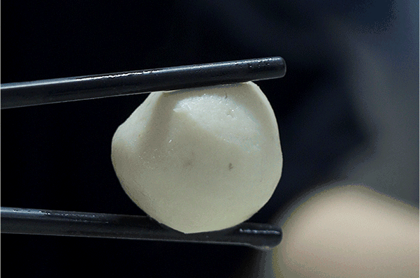 摔打不够,鱼的胶质不吐,鱼丸松散没有弹性;而摔打过度,鱼浆变老,鱼丸没有脆、嫩的质感。当中的把控,靠老师傅积累的手感和肌肉记忆,也直接决定鱼丸制作的成败。