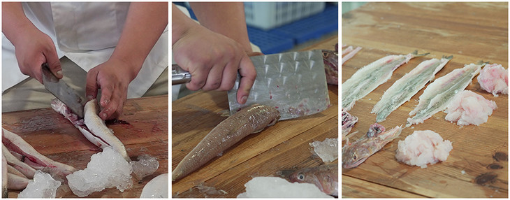 然后做鱼丸过程也要快。因为动作一缓慢,鱼肉就会氧化,损失鲜度。唯有争分夺秒,才能至大限度保持鲜甜细嫩的口感。