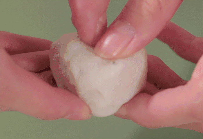 用手撕开,里面肌理精密紧致,看得到一梳梳的肉质纤维。而超市鱼丸没有明显肌理,都被淀粉给填充掉了。