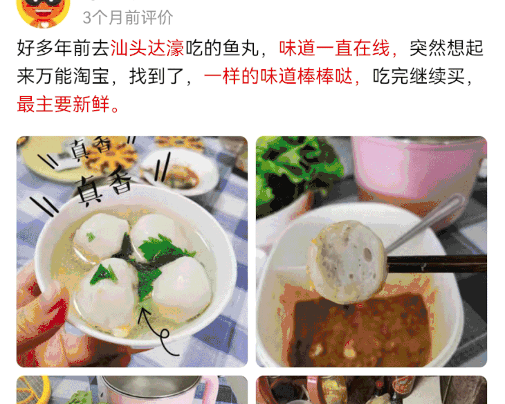 但品质上绝对是没得比的。这种90%海鱼肉鱼丸,在潮汕当地也要80元一斤!有同事吃过后说,再也不想吃回速冻鱼丸了。