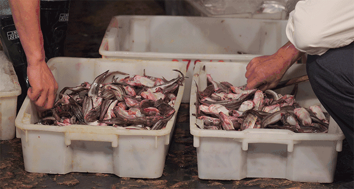这过程要求又快又准,手艺粗糙就会带入鱼刺。梁师傅笑称,自己学了8年手艺,有时还未必得到老爸的认可。