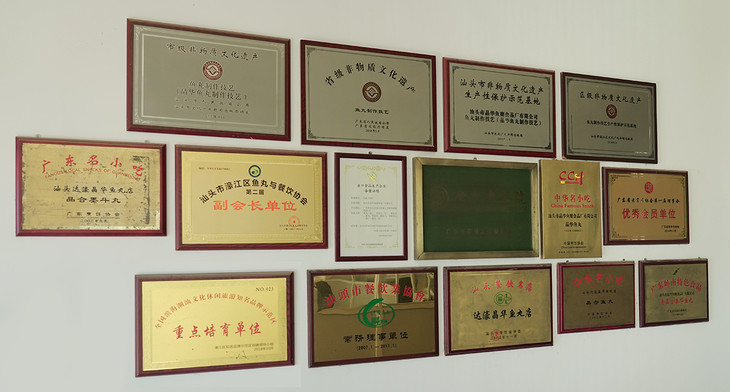 其他荣誉和奖项也是满满一墙:“广东老字号”、“中华名小吃”、“广东岭南特色食品”、“汕头餐饮名优企业”。