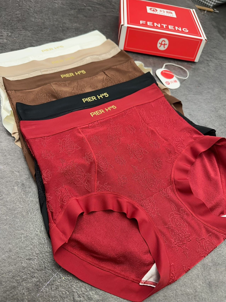 重磅升级‼️品牌直发💰贵妇级内裤🔥热销26W+【FENTENG芬腾国风浮雕“升级版”10A蚕丝收腹裤】红色本命年鸿运内裤一盒5条!上身像第二层肌肤一样舒服! 客供云柔纱面料,轻薄透气,重磅升级