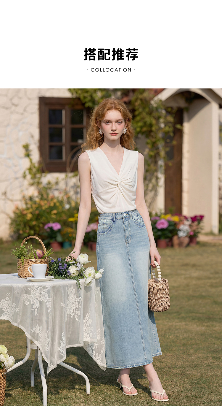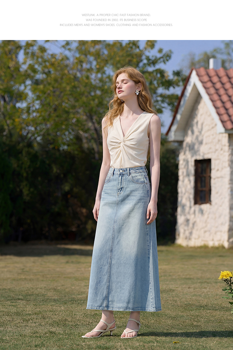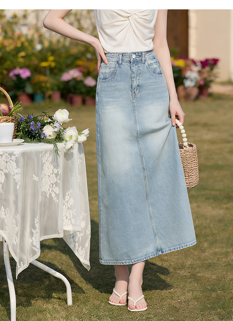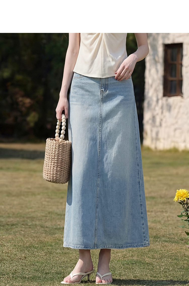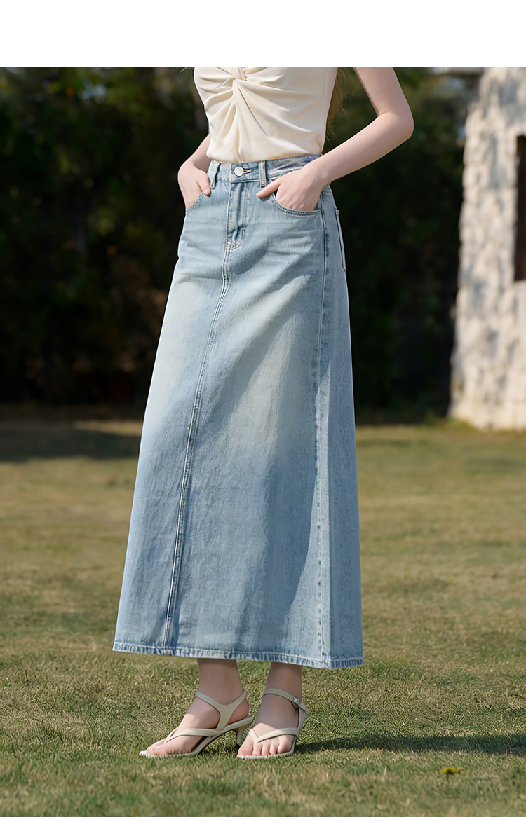 西遇怀旧蓝百搭2026春夏新款高腰显瘦中长款包臀a字裙牛仔半身裙H0060241