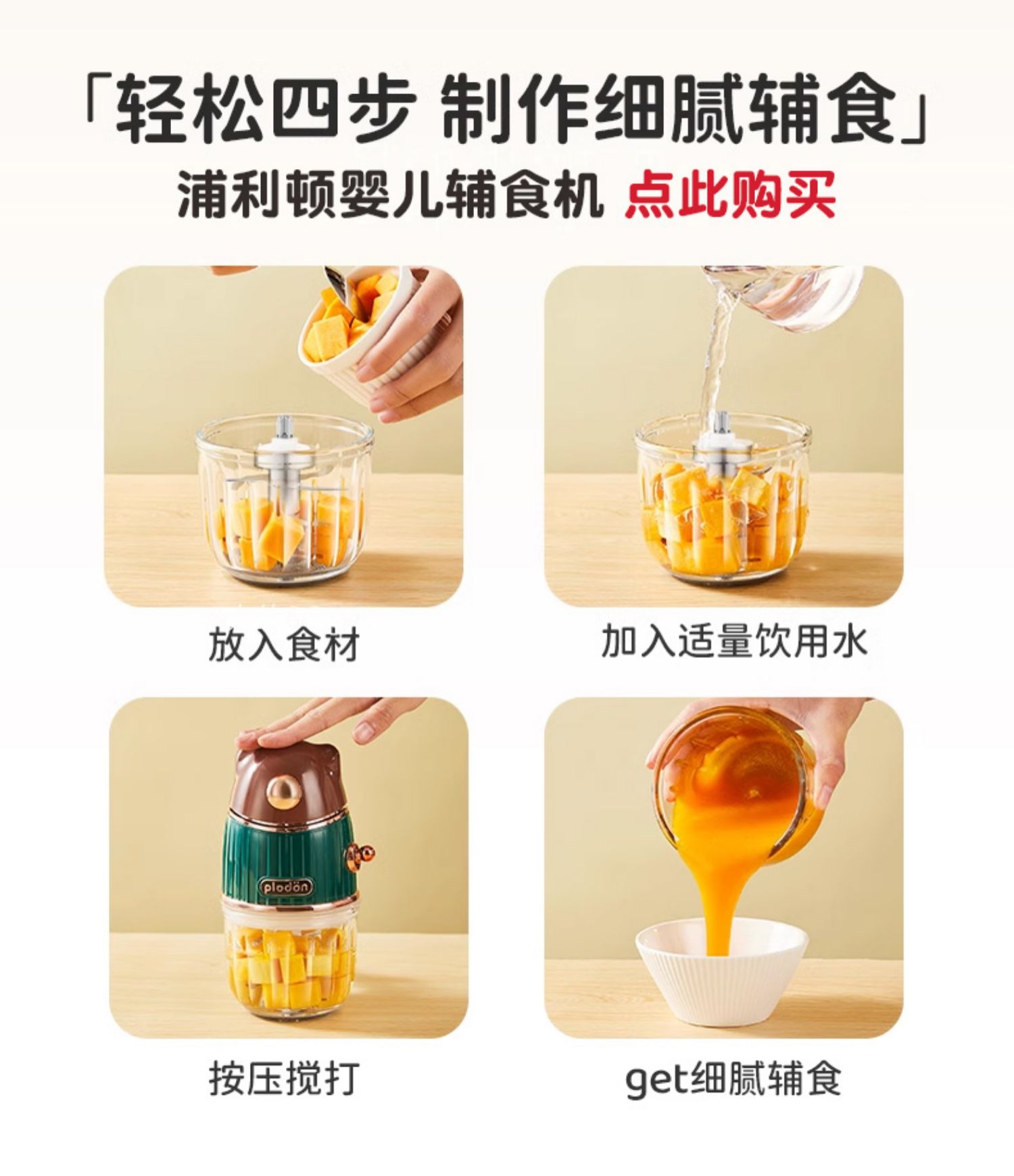 Mamahome辅食电炖砂锅盅煲1升容量汤粥宝宝婴儿小饭煲多功能蒸煮一体米油FM01