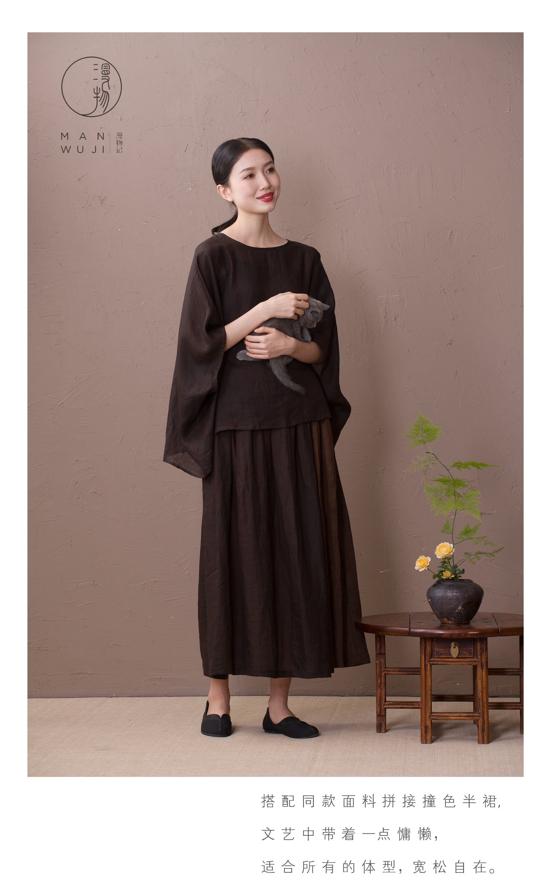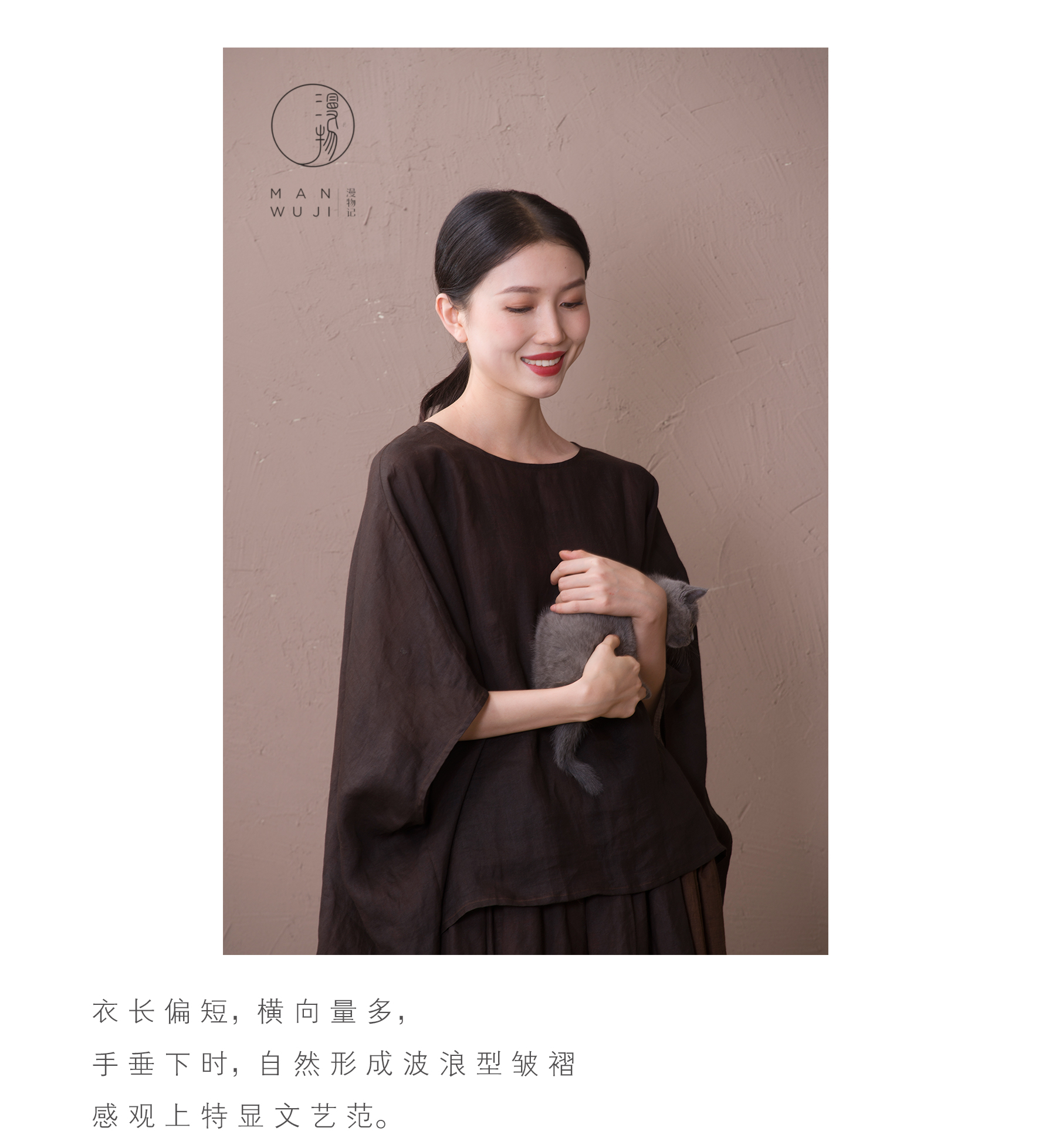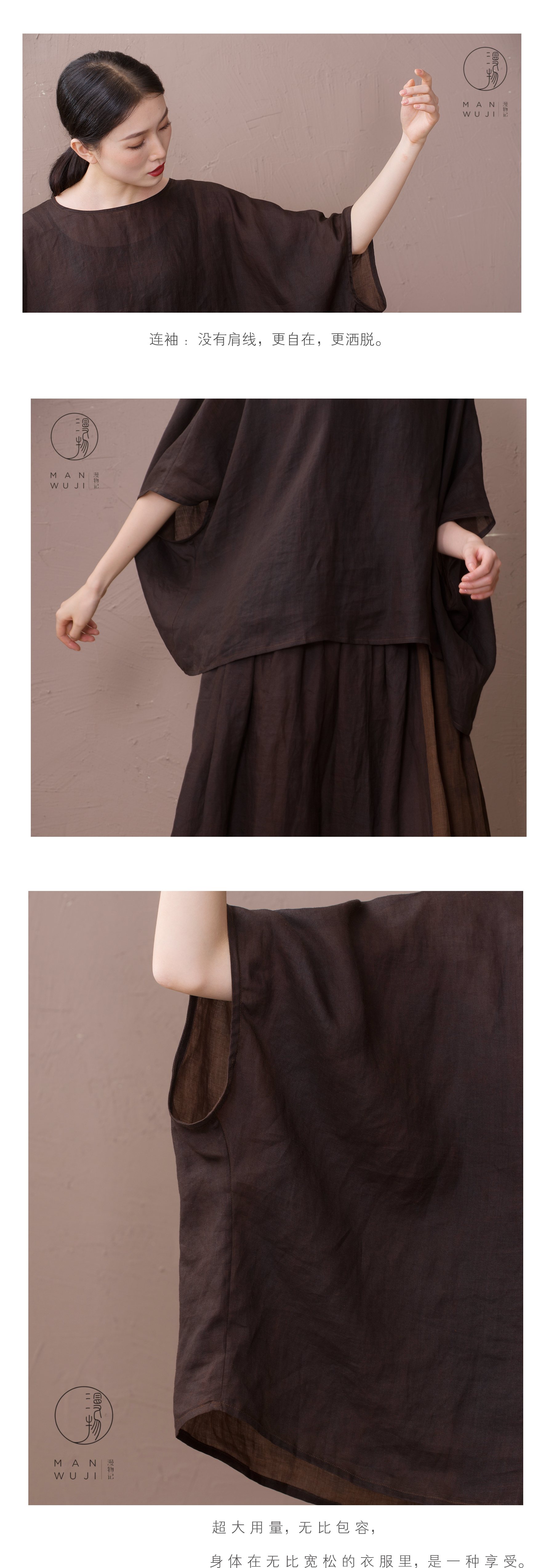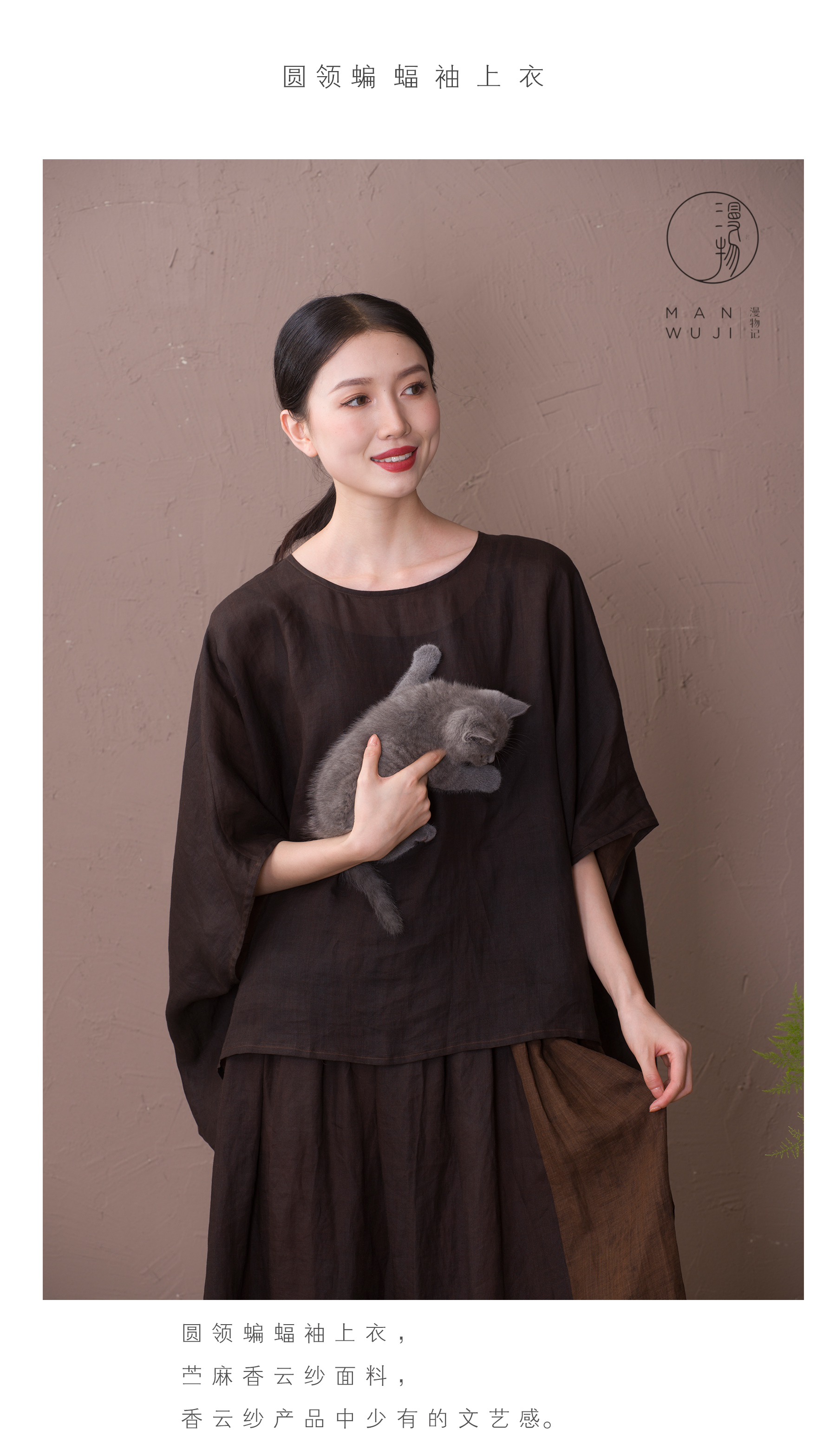 漫物记圆领蝙蝠袖上衣