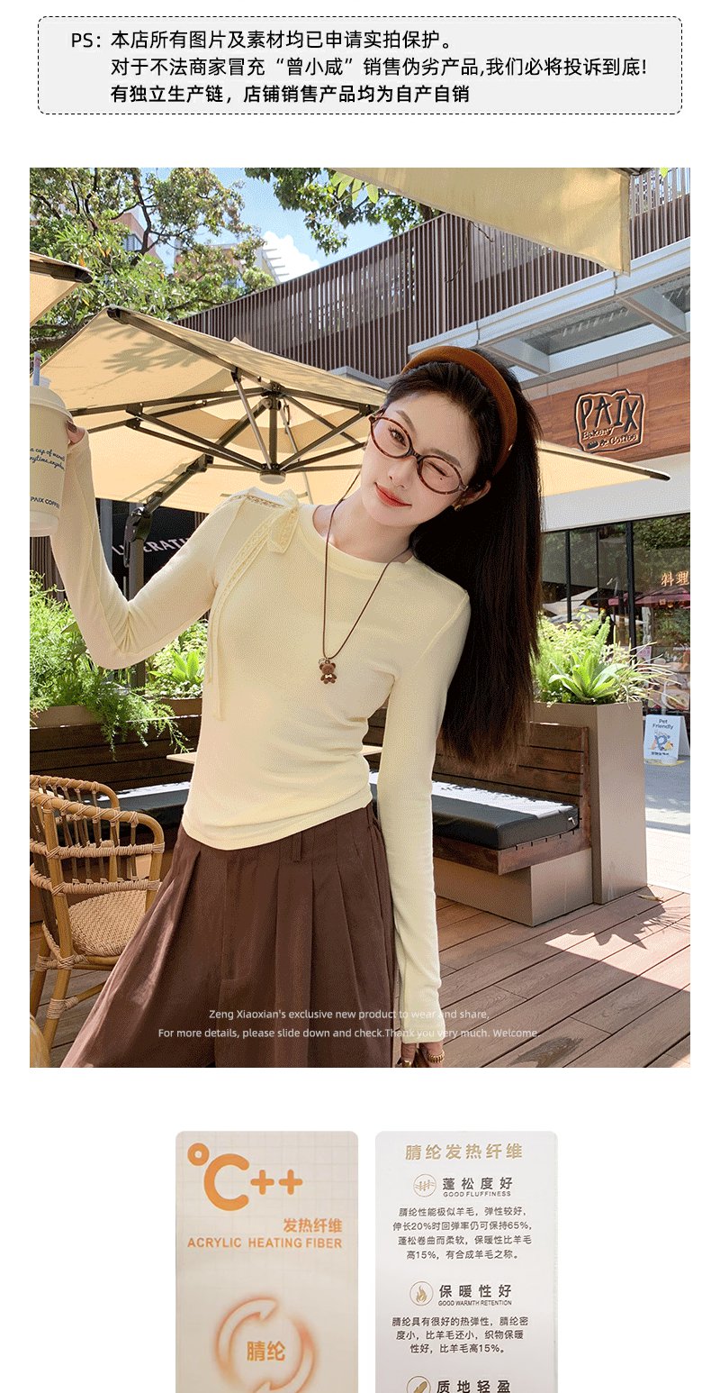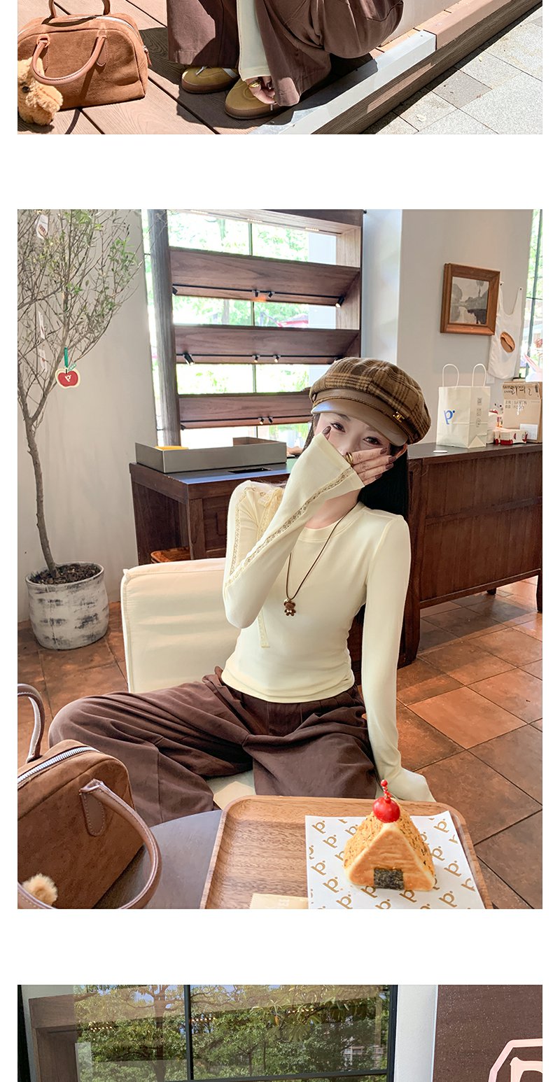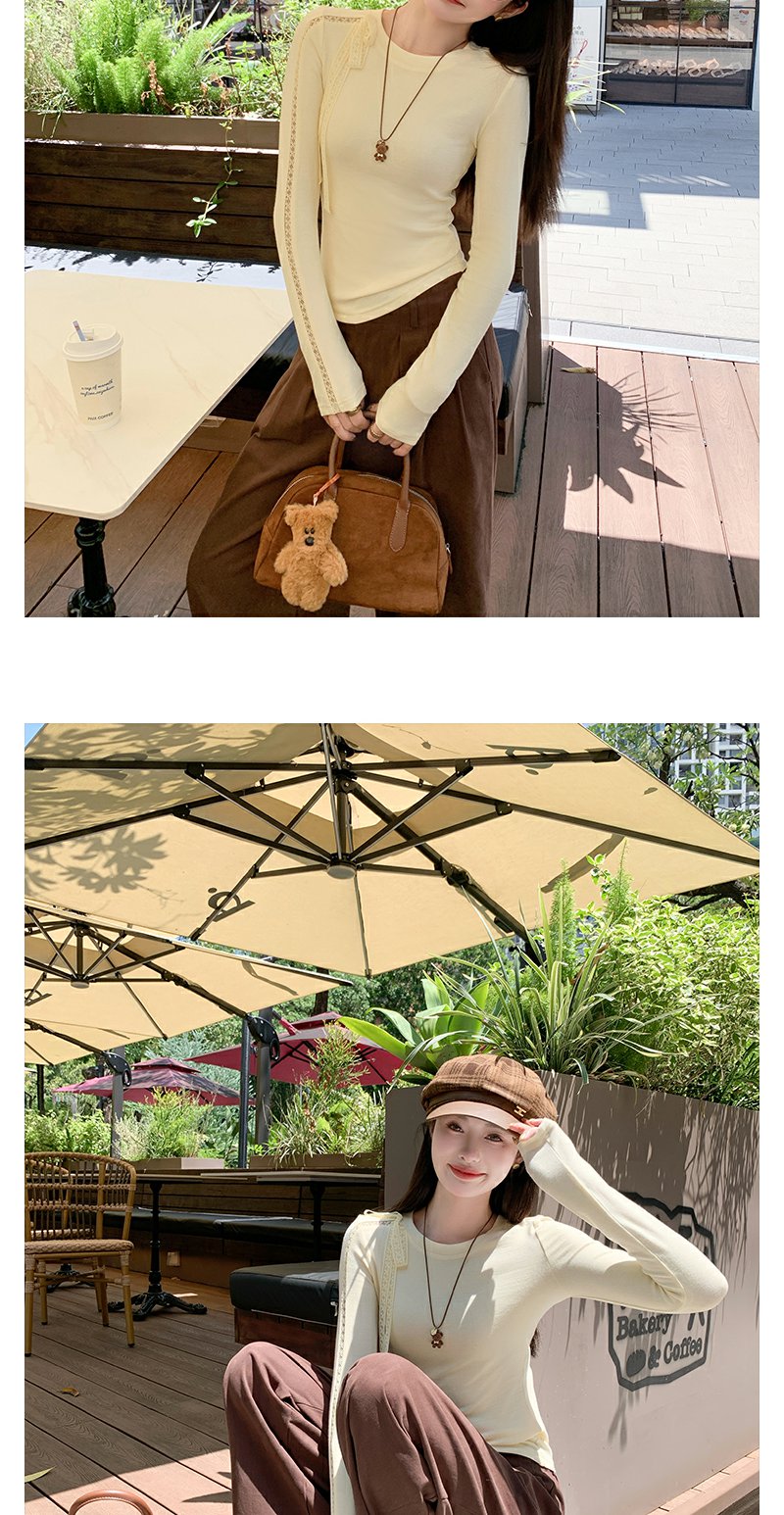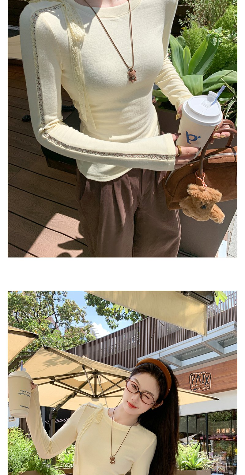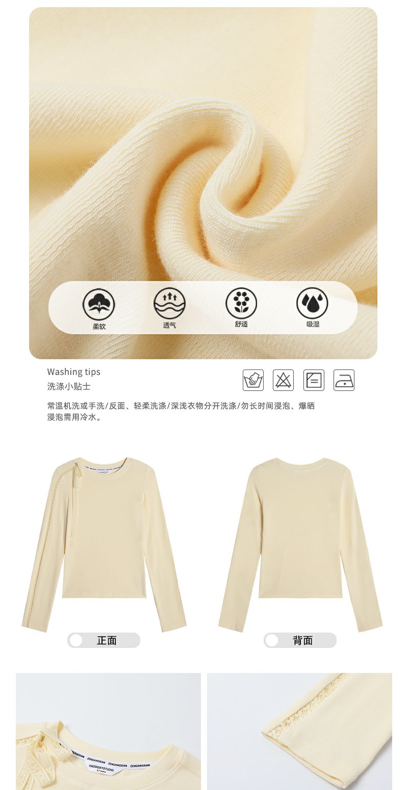 【129元任选2件】现货!韩系蕾丝镂空黄色长袖t恤
