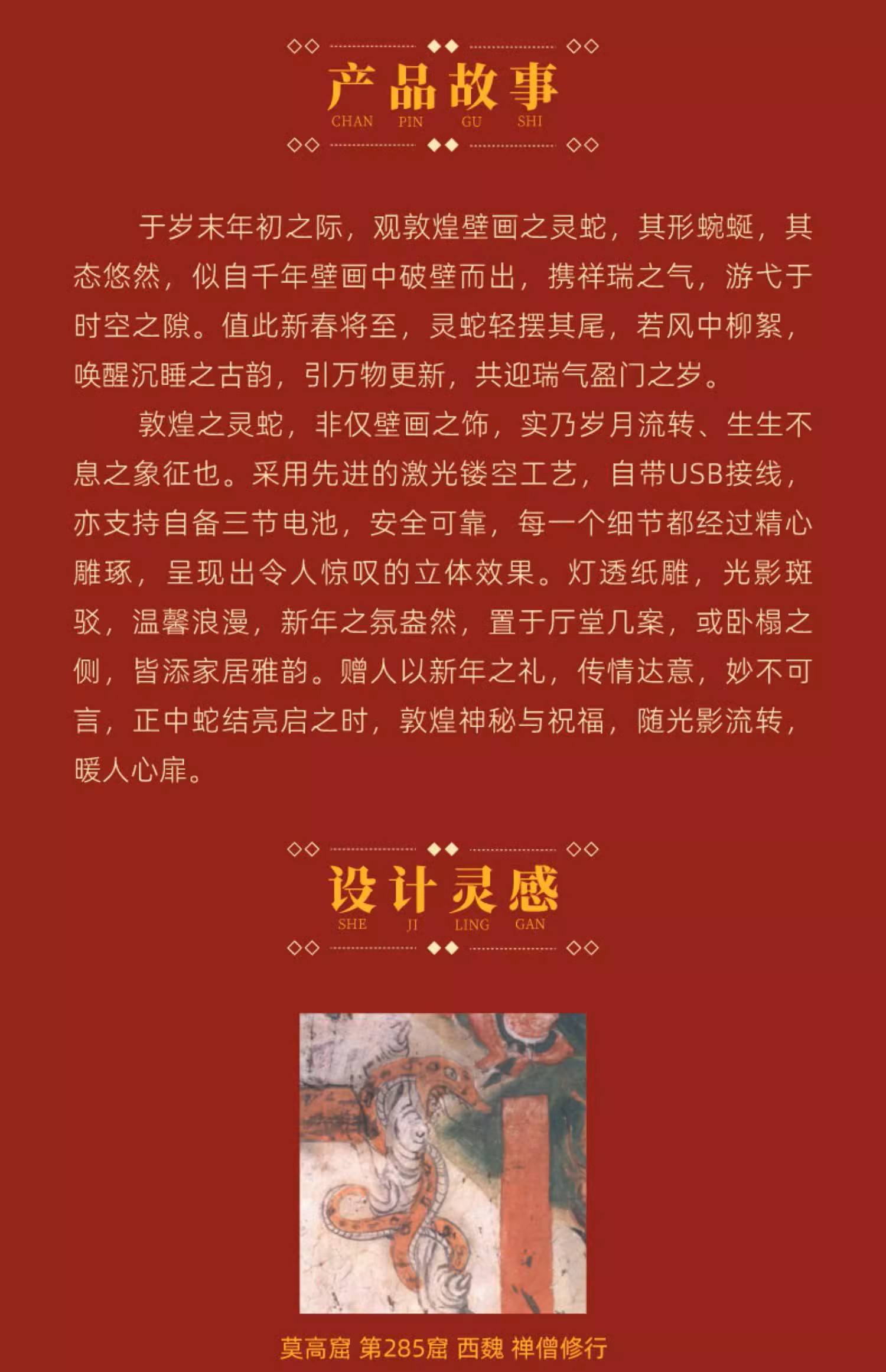 敦煌研究院 蛇绕福结敦煌宝结纸雕氛围灯 蛇年氛围灯卧室新年礼物